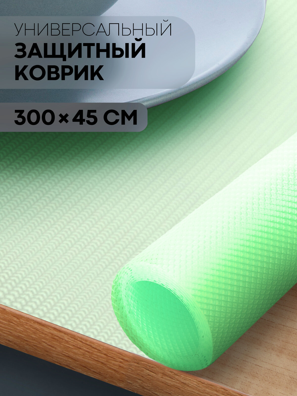 Противоскользящий ПВХ коврик для кухни водостойкий 300х45, бренд Картофан, зеленый