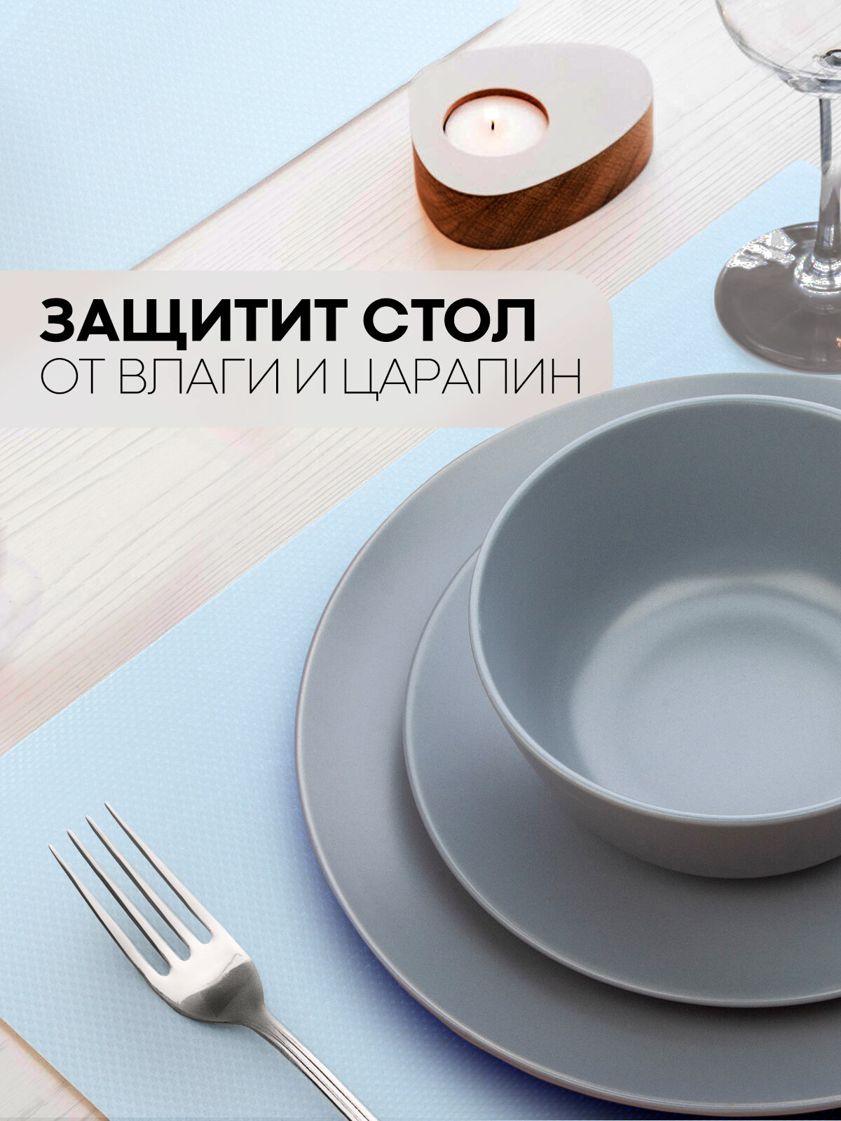 Противоскользящий ПВХ коврик для кухни водостойкий 150х45, бренд Картофан, голубой