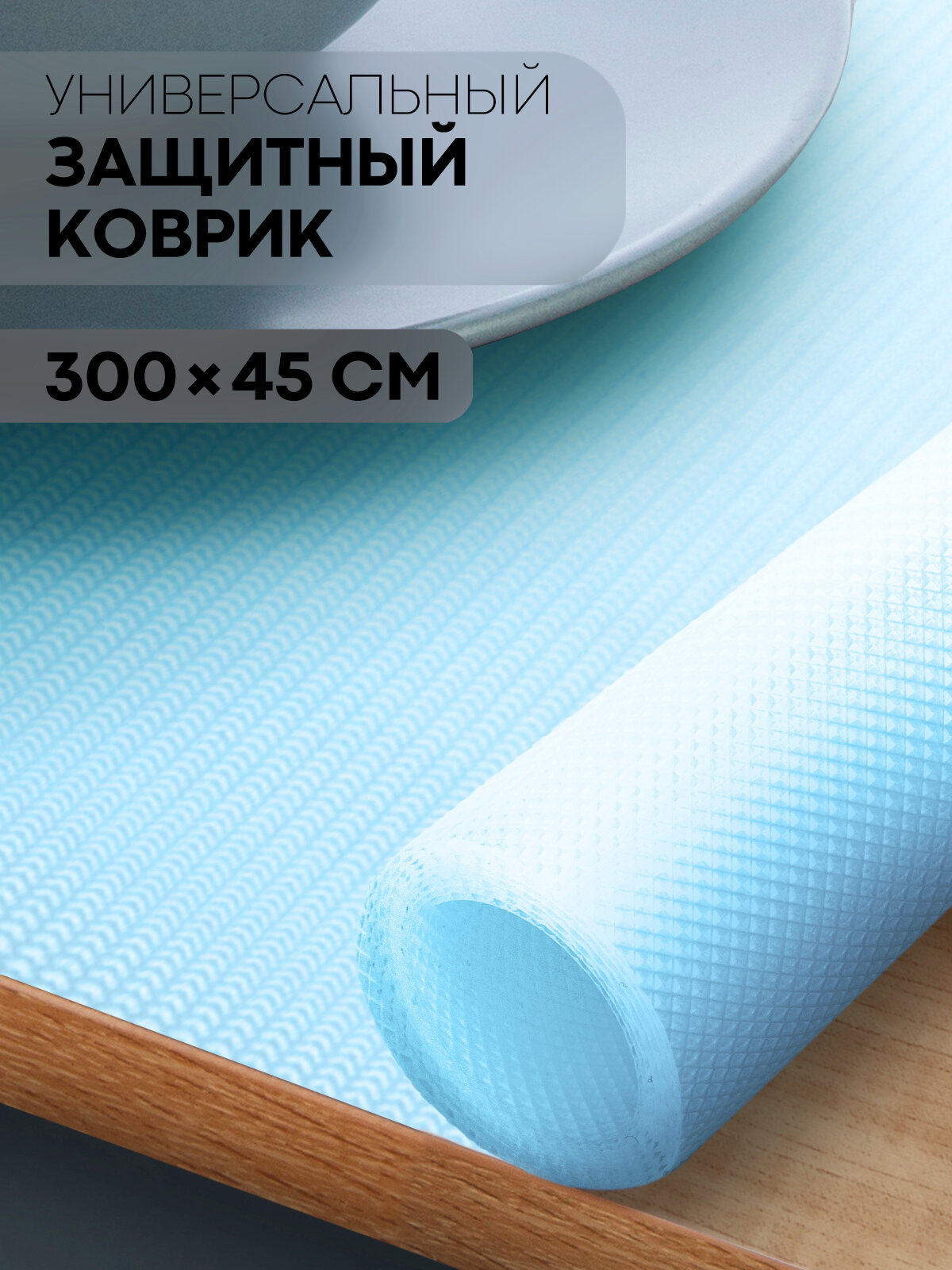 СохранитьПротивоскользящий ПВХ коврик для кухни водостойкий 300х45, бренд Картофан, голубой интересное: