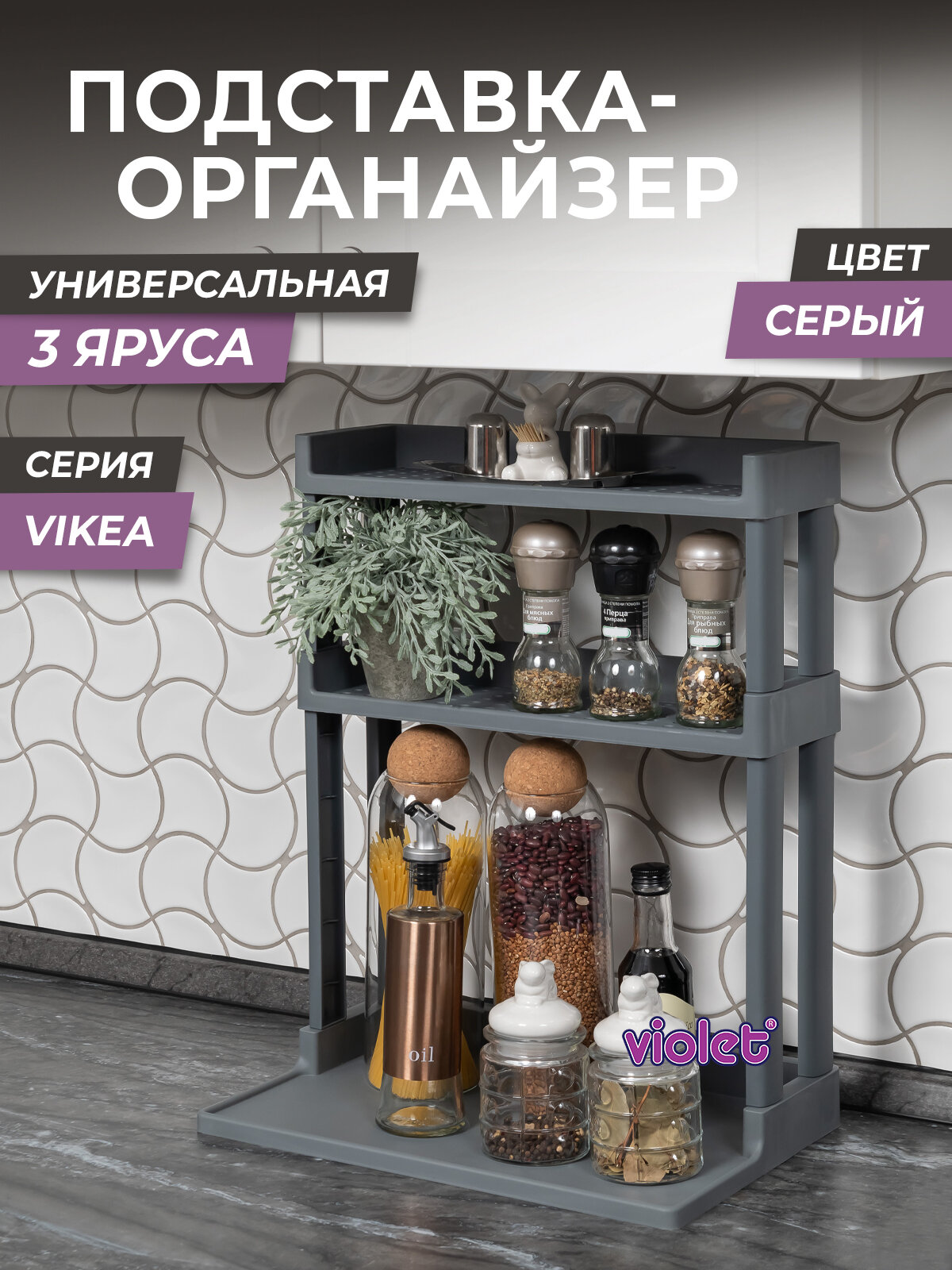 Купить Полка для кухни настольная Vikea, 3 яруса, цвет серый / органайзер для хранения вещей и мелочей в ванную