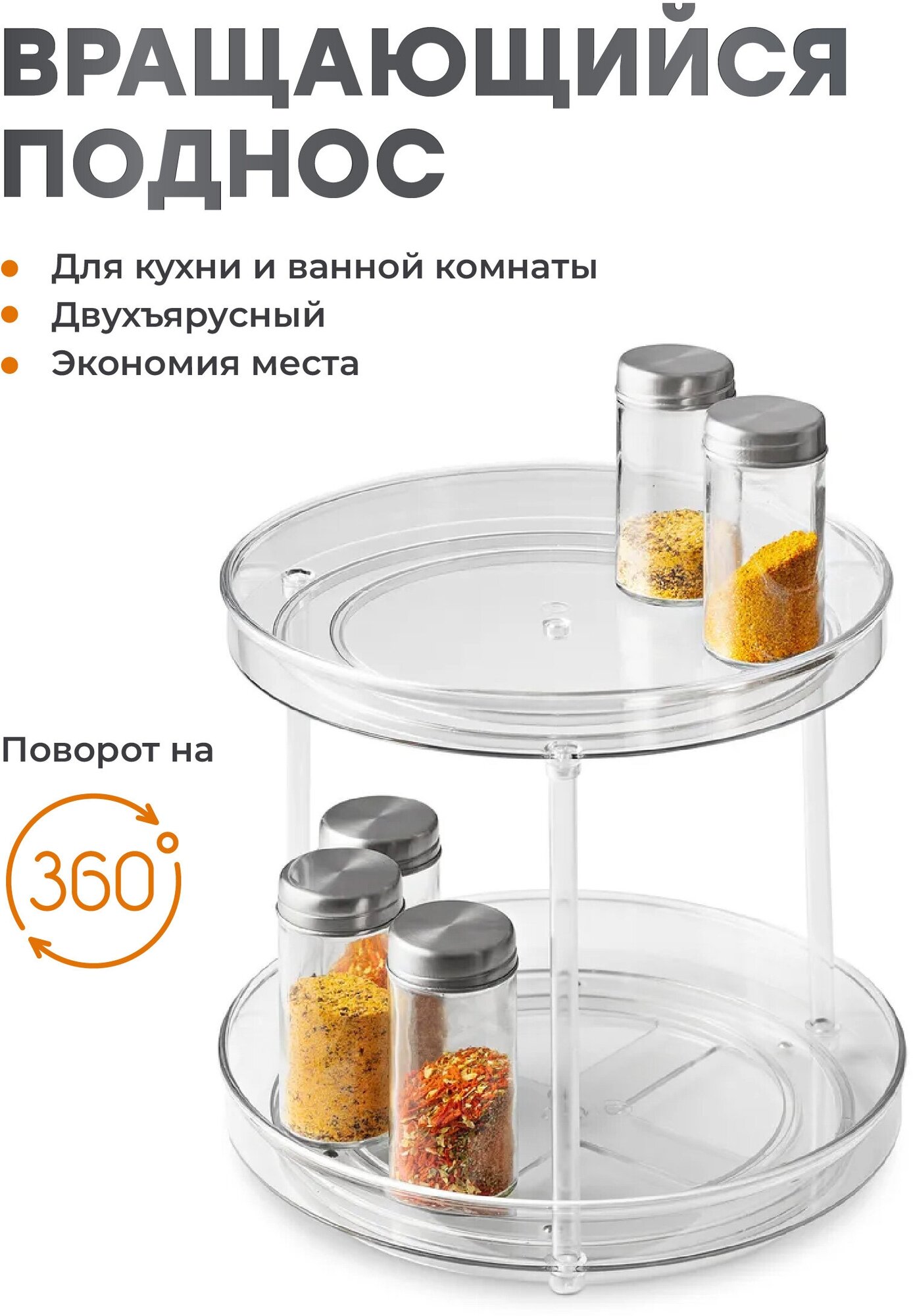 Поднос вращающийся для специй Shiny Kitchen, подставка органайзер для хранения соусов, приправ
