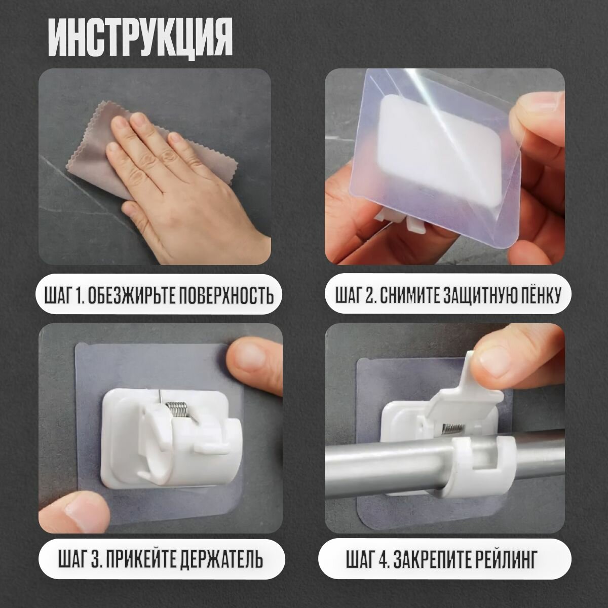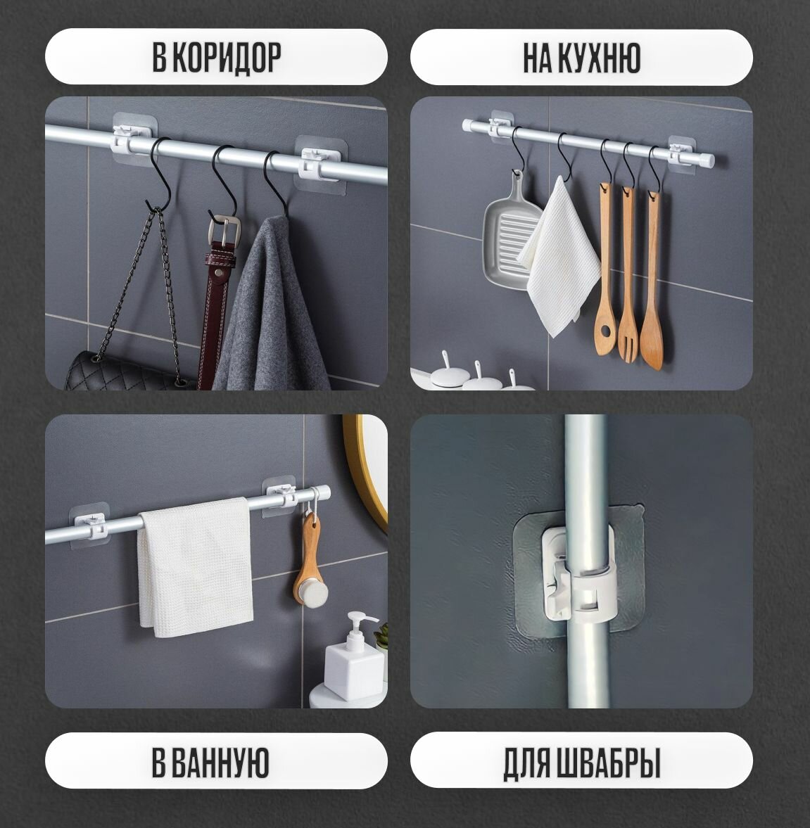 Держатель для рейлинга MINITHINGS, набор из 2 шт. / Держатель самоклеящийся для кужни и ванной / Крепление для штанги