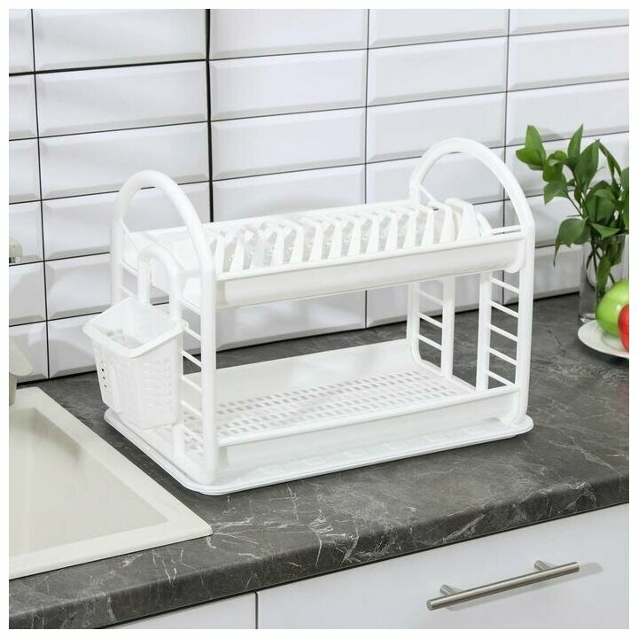 Купить Сушилка для посуды двухъярусная настольная DDStyle Белая 50.8*30*34 см.