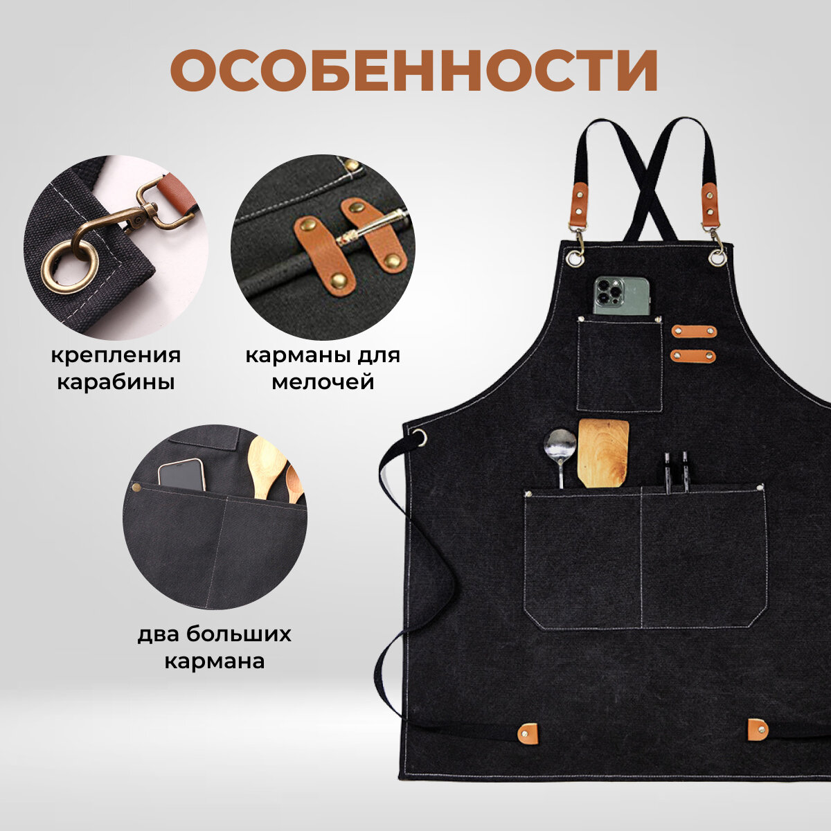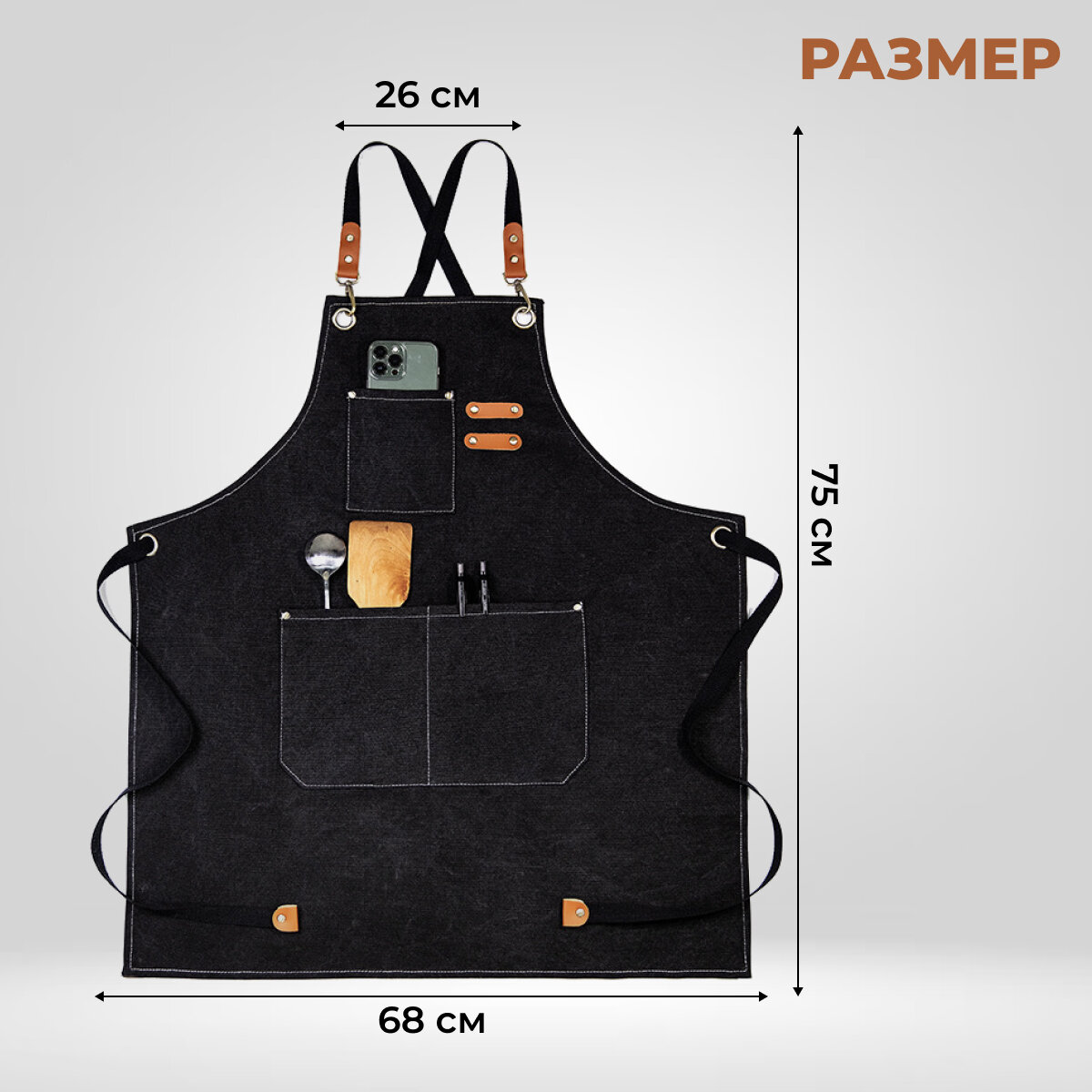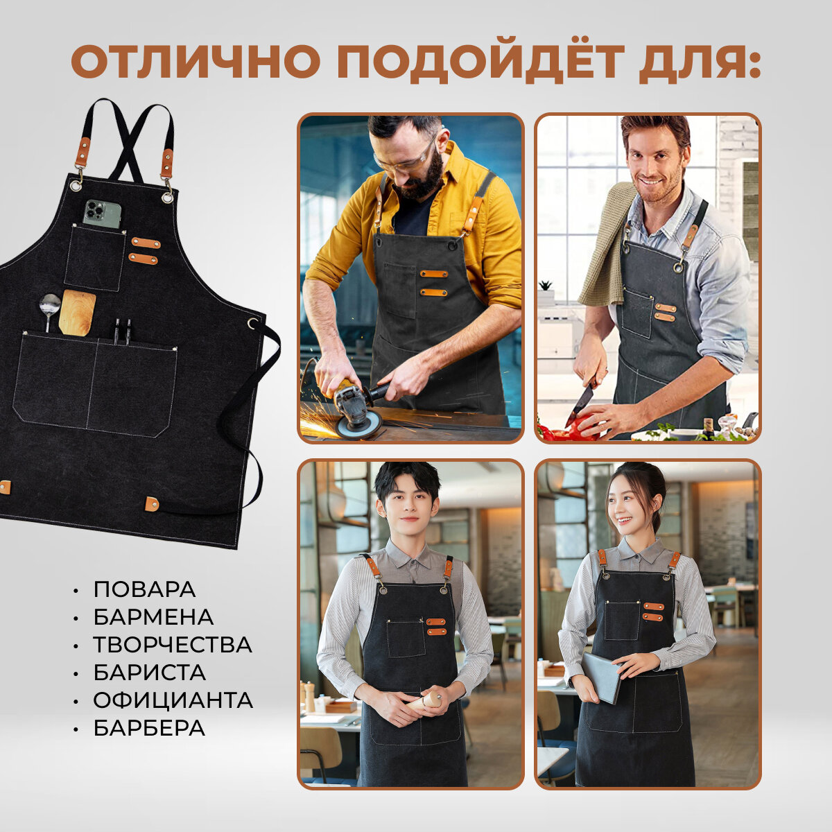Фартук джинсовый универсальный водоотталкивающий черный для повара, бармена, творчества, бариста, официанта, барбера, Zur-Kibet интересное: