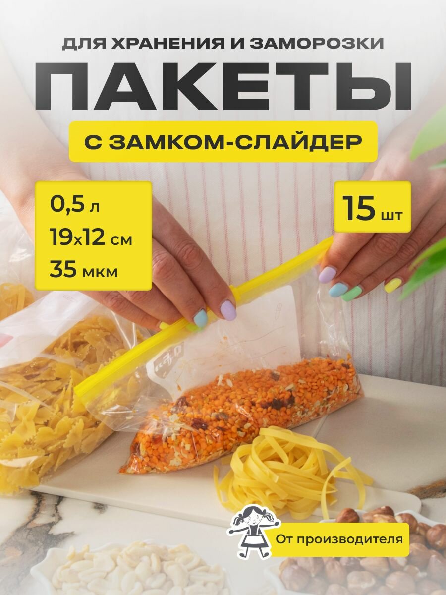 Пакеты-слайдеры для заморозки и хранения продуктов Домовушка, 0,5л, 35мкм, 15 шт/упак. интересное: