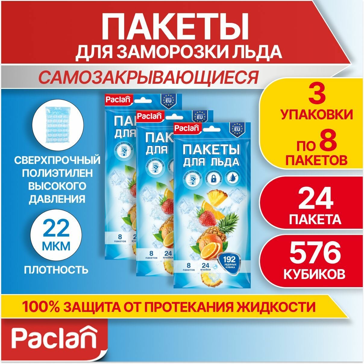 Пакеты для заморозки льда кубики, 3 упаковки по 192 кубика, Paclan интересное: