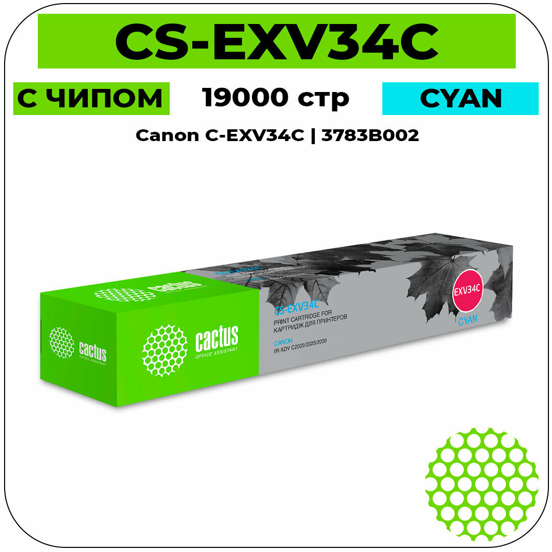 Картридж лазерный Cactus CS-EXV34C C-EXV34 C голубой (19000стр.) для Canon IR Advance C2030L/C2030i/C2020L/C2020i/C2025i