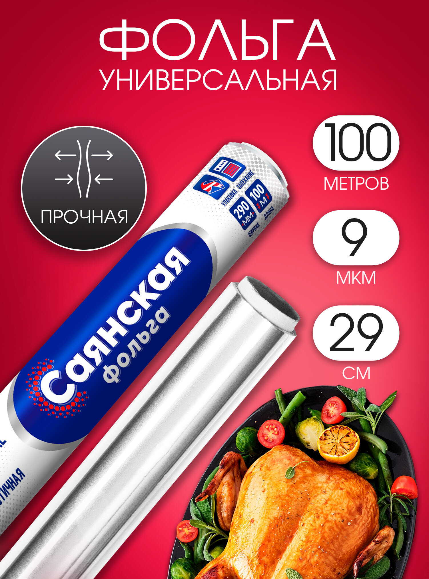 Фольга пищевая прочная Саянская для запекания и выпечки 100 м, 9 мкм, фольга для запекания, пищевая фольга
