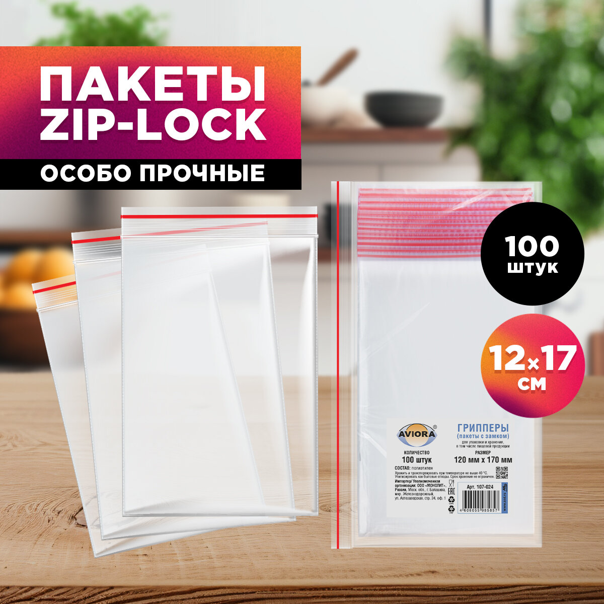 AVIORA Пакеты с зип замком / грипперы с зип замком для хранения и упаковки 120х170мм, 100 шт. 107-024