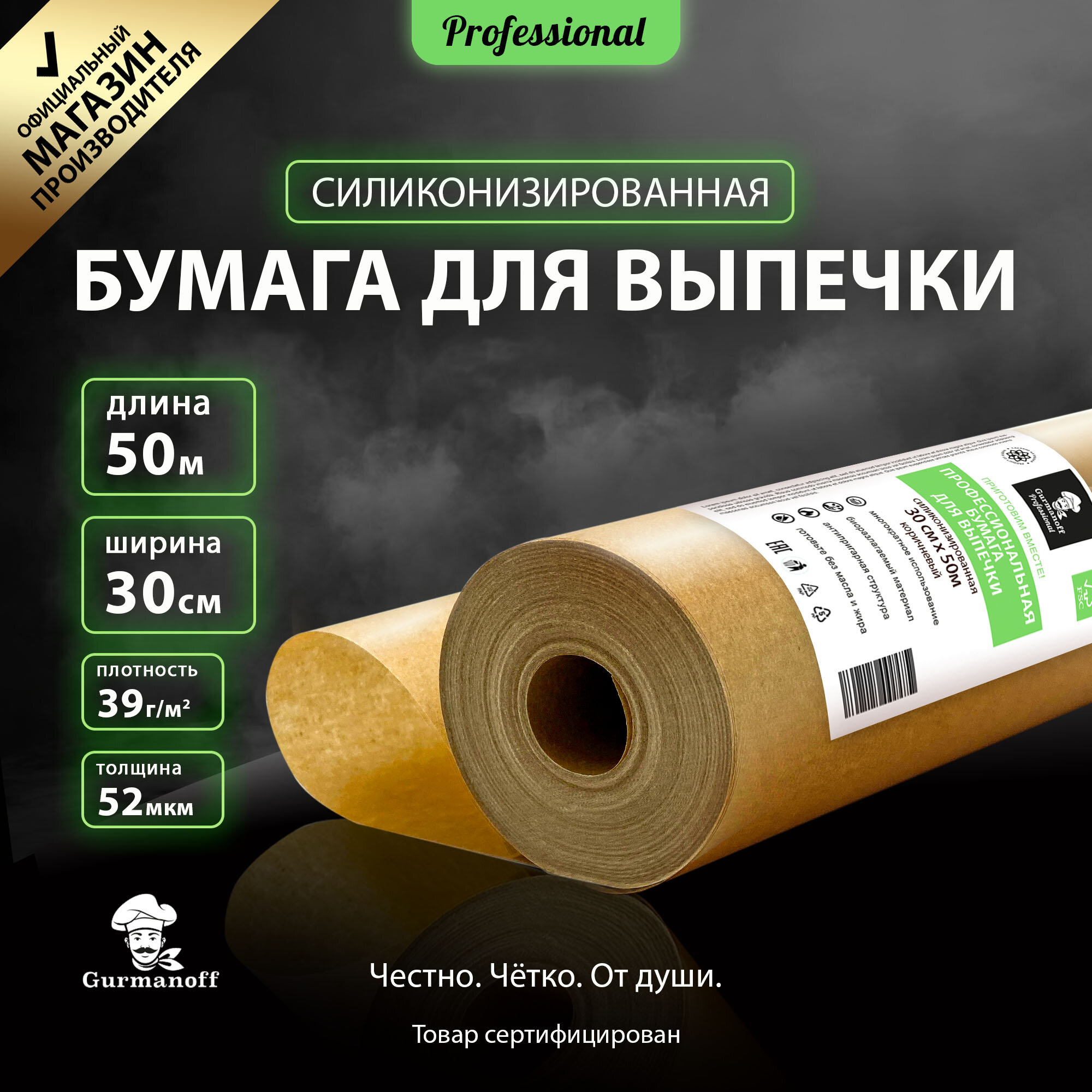 Купить Бумага для выпечки силиконизированная Gurmanoff 50м х 30см многоразовая крафт /пергамент