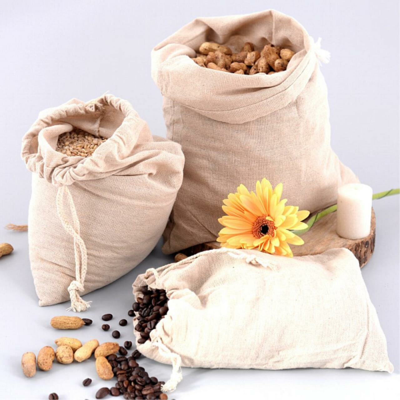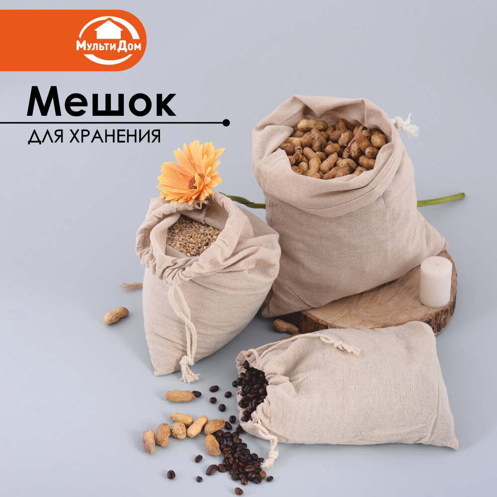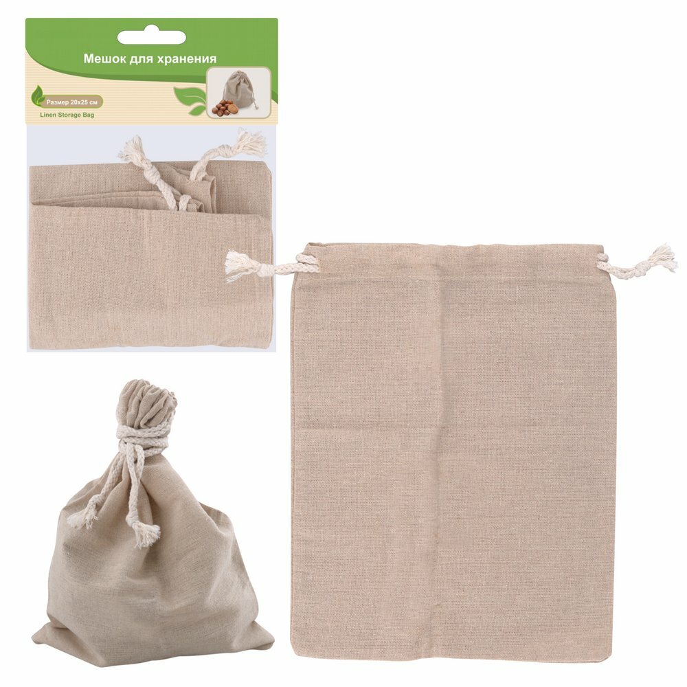 Мешок для хранения сыпучих продуктов, натуральный лён . Размер 20х25см.