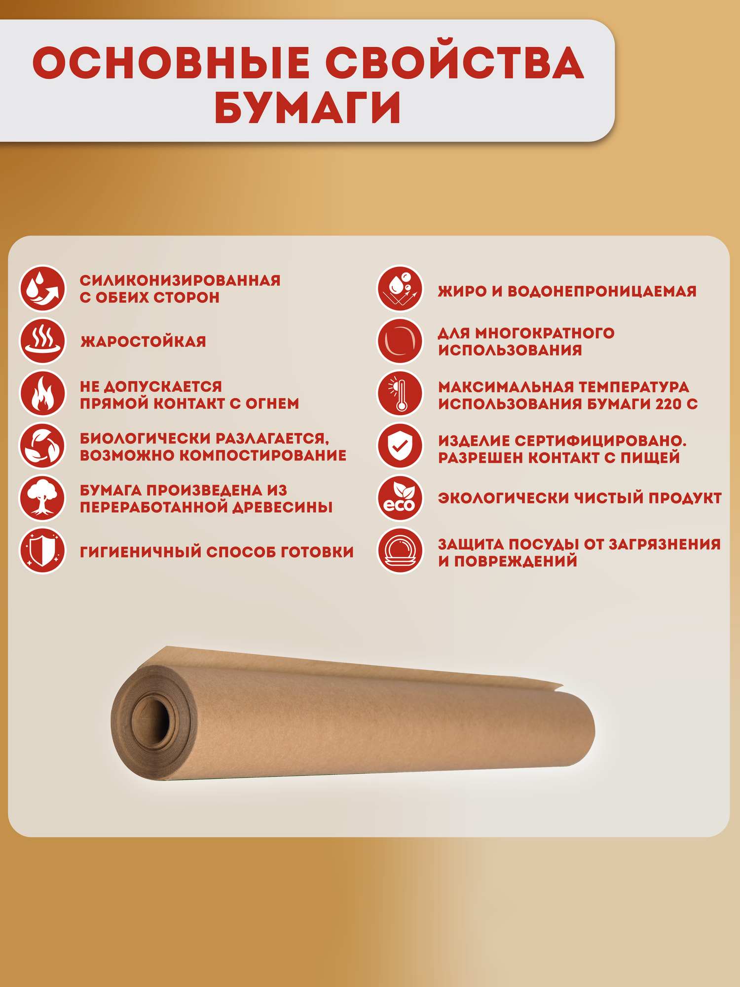 Силиконизированная бумага для выпечки коричневая, пергамент 38 см х 25 м интересное: