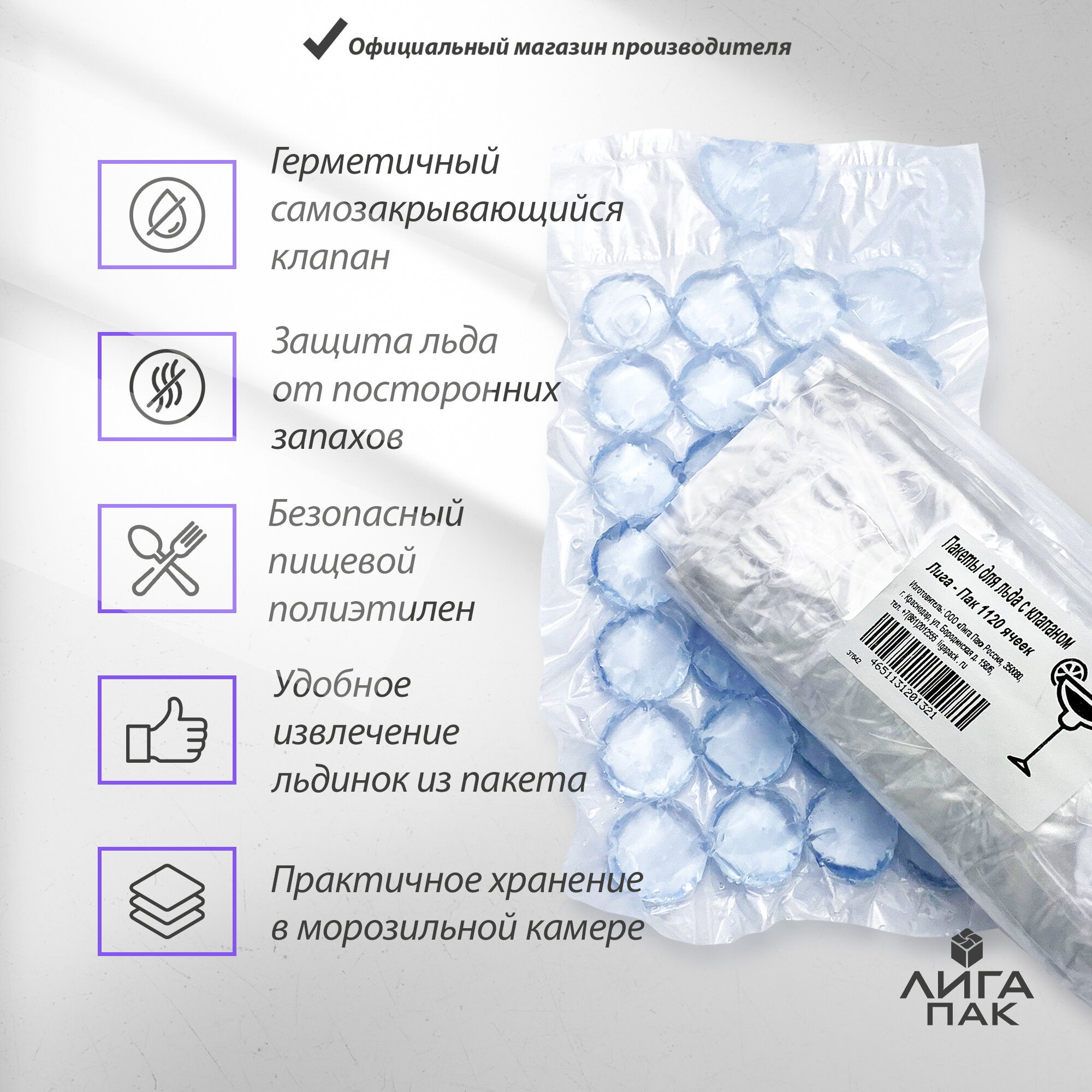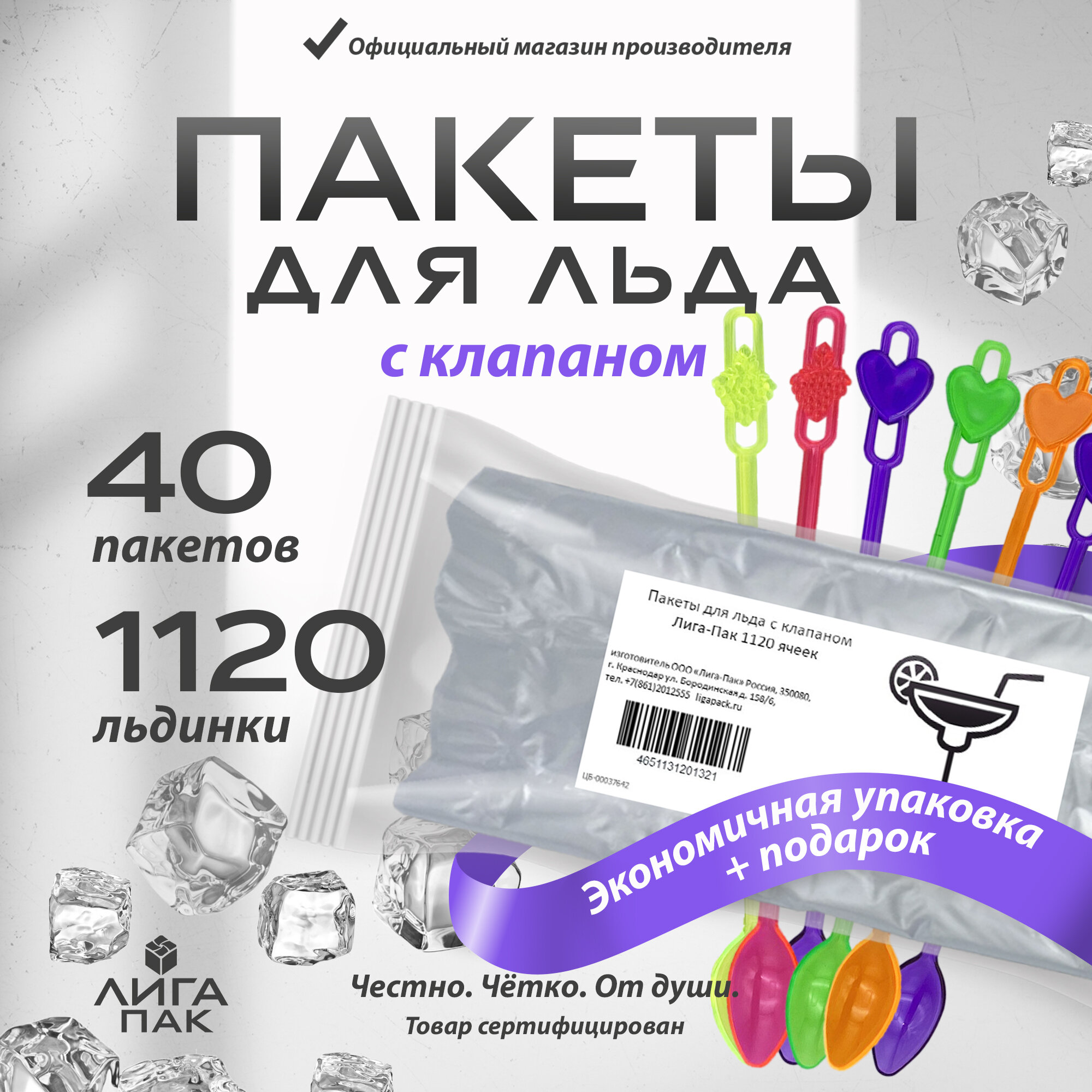 Купить Форма для льда Лига-Пак 1120 ячеек и подарок внутри /пакеты самозакрывающиеся