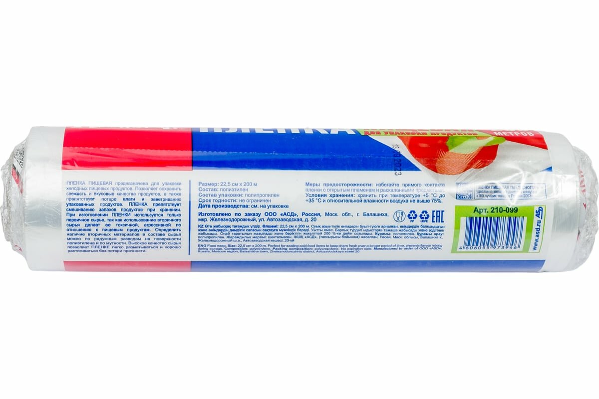 | Дополнительная информация | Пищевая плёнка 1 рулон - 30см х 200м |