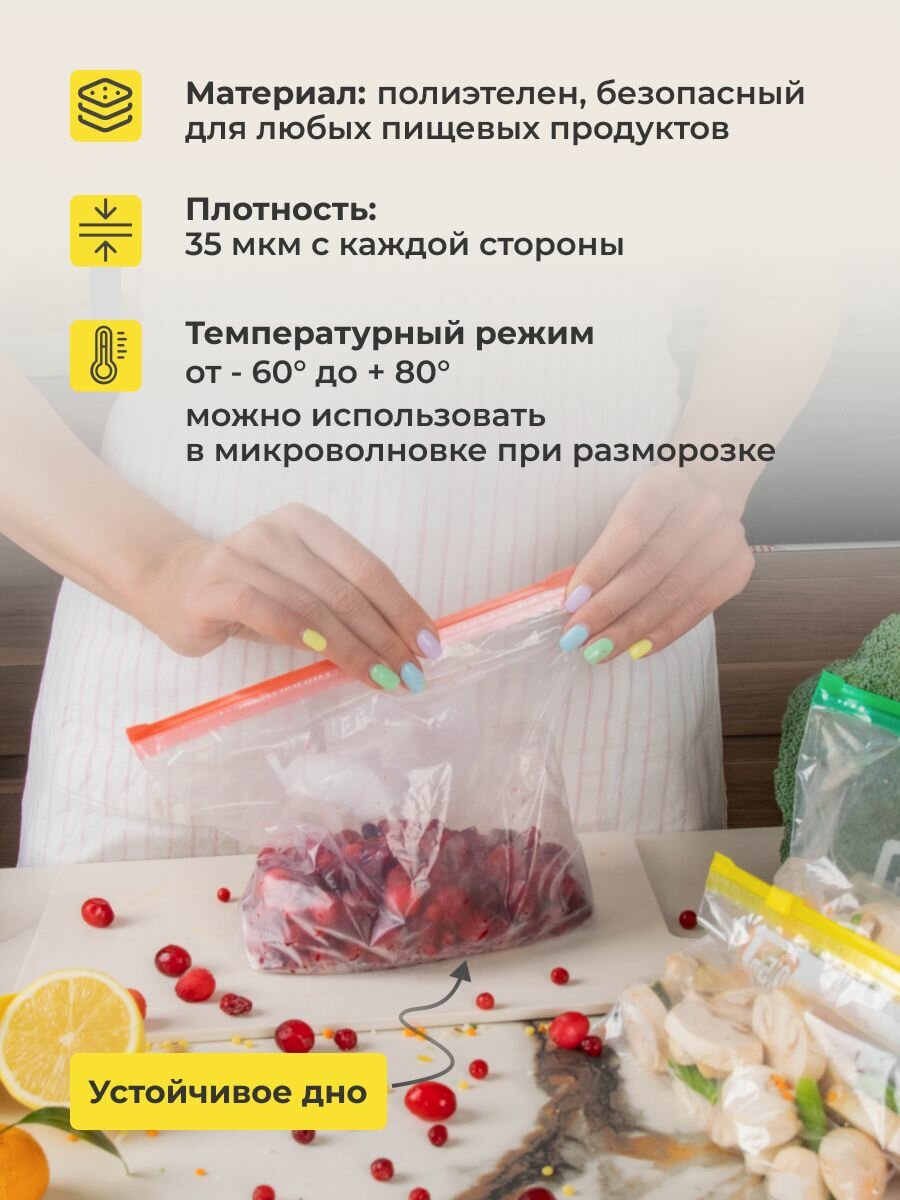 Пакеты-слайдеры для заморозки и хранения продуктов 2 литра, 35мкм,30шт/упак. интересное: