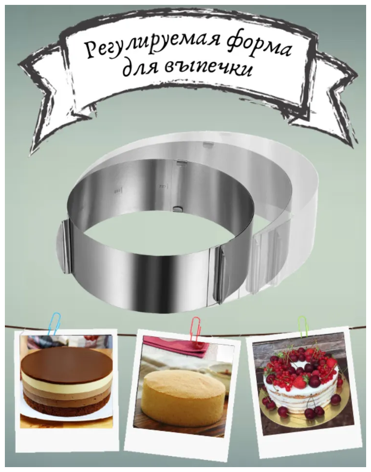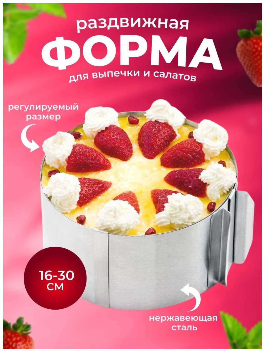 Раздвижное кондитерское кольцо 16-30см, высота 8см / Форма для выпечки и салатов, кольцо кулинарное регулируемое интересное:
