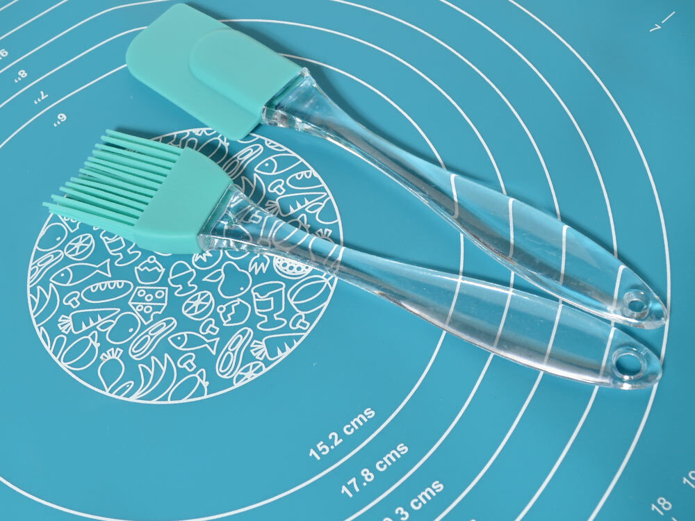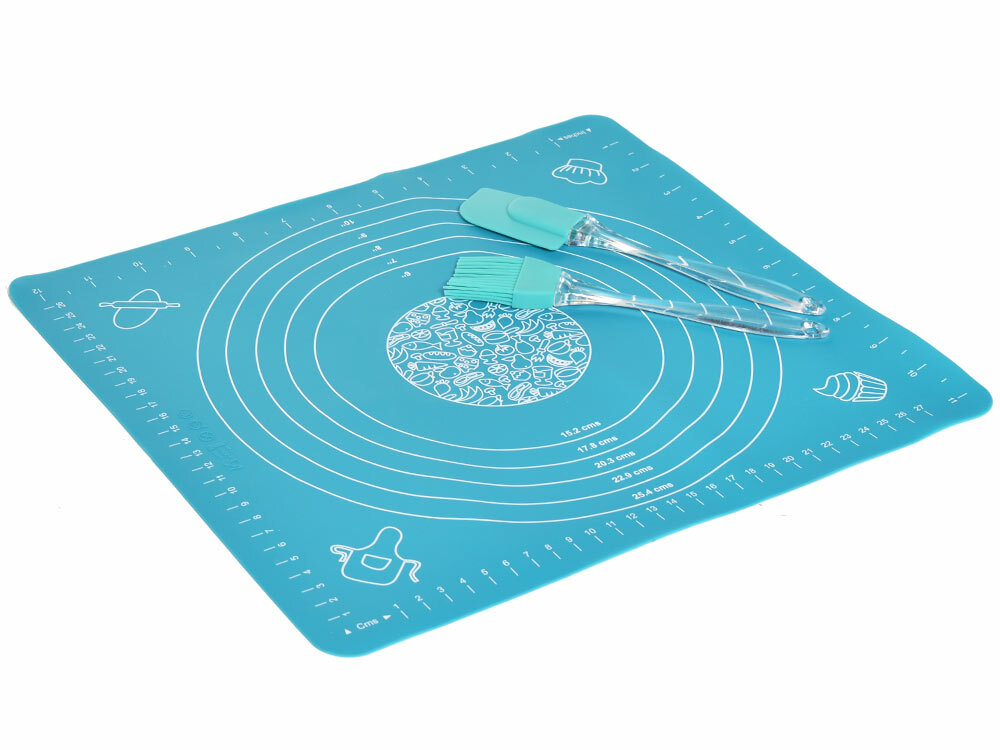 Купить Коврик кулинарный, силиконовый для раскатки теста 26*30 см (голубой) с кисточкой и лопаткой