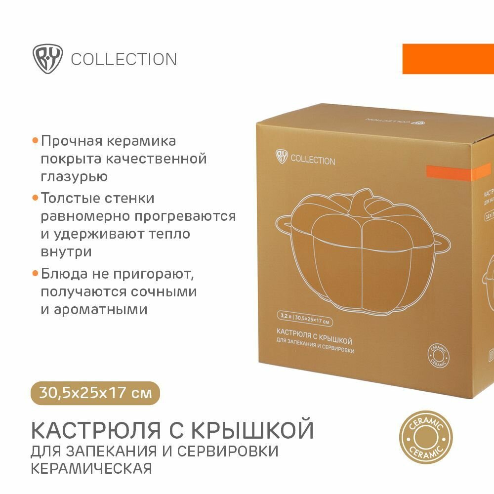 Купить Тыква Кастрюля с крышкой для запекания и сервировки, 3.2 л, керамика BY COLLECTION
