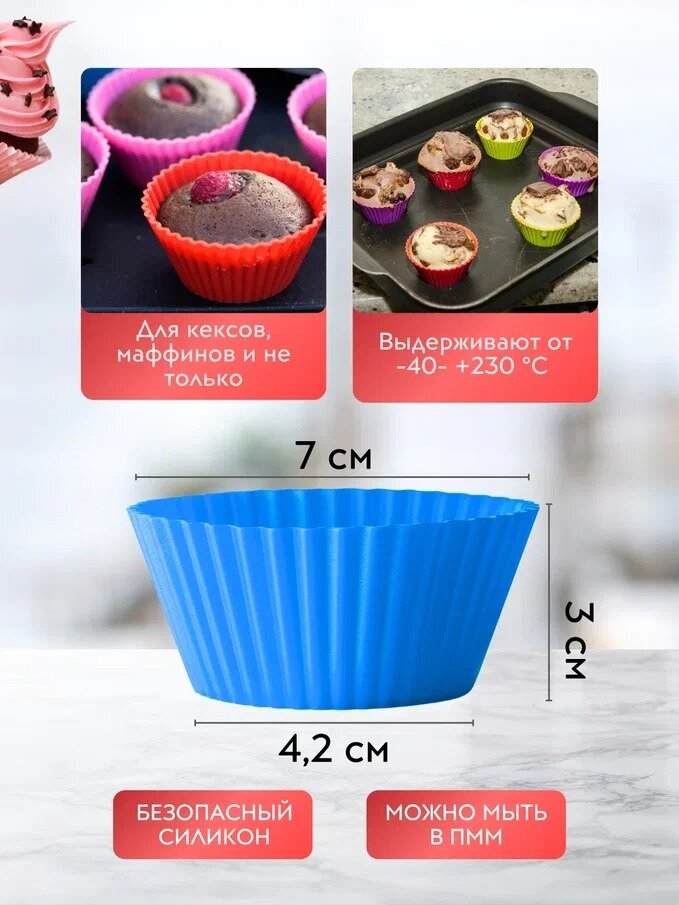 Формы для выпечки кексов, маффинов, силиконовые, 12 шт, цвет синий