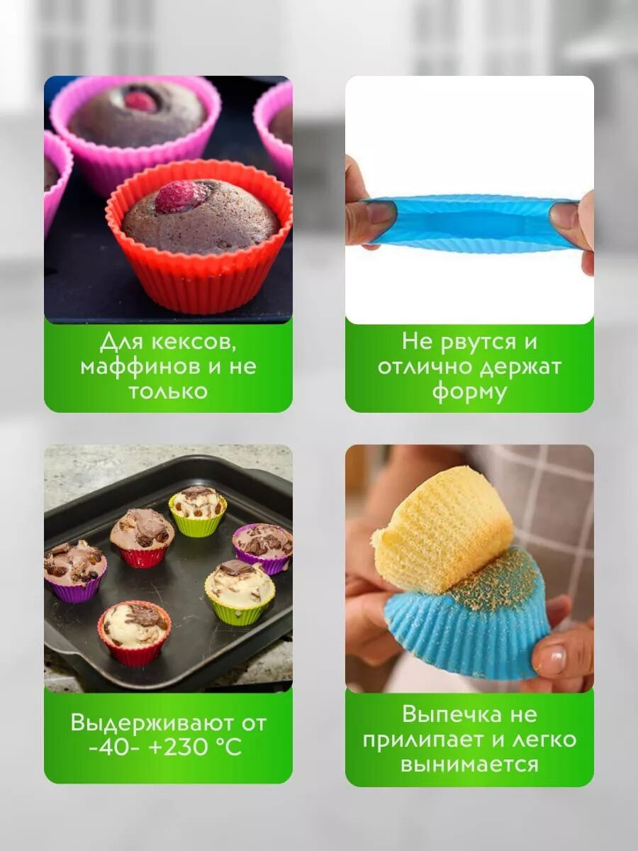Формы для выпечки кексов, маффинов силиконовые 12шт зелёные