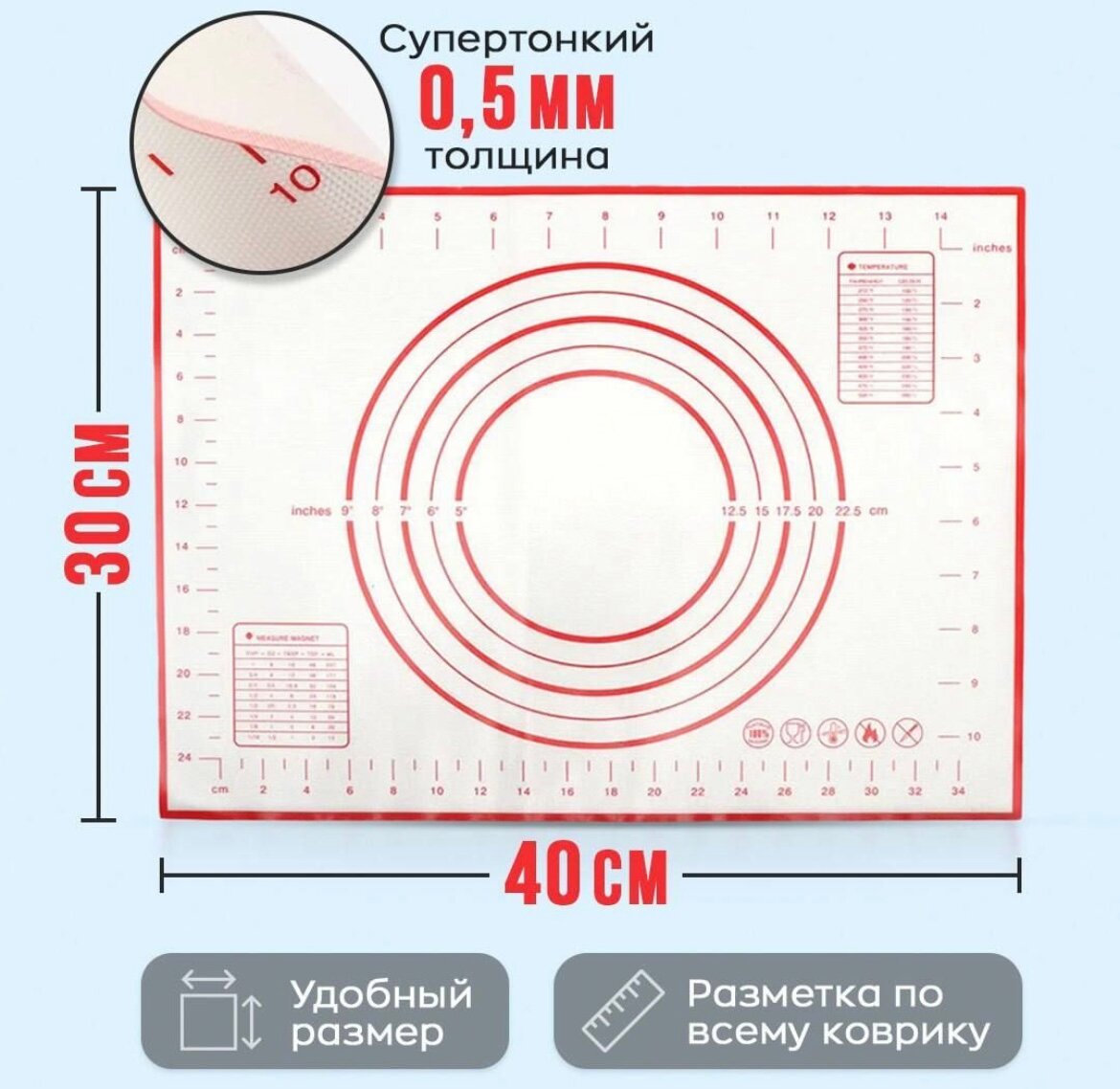 Коврик силиконовый для теста No 40 х 30 см интересное: