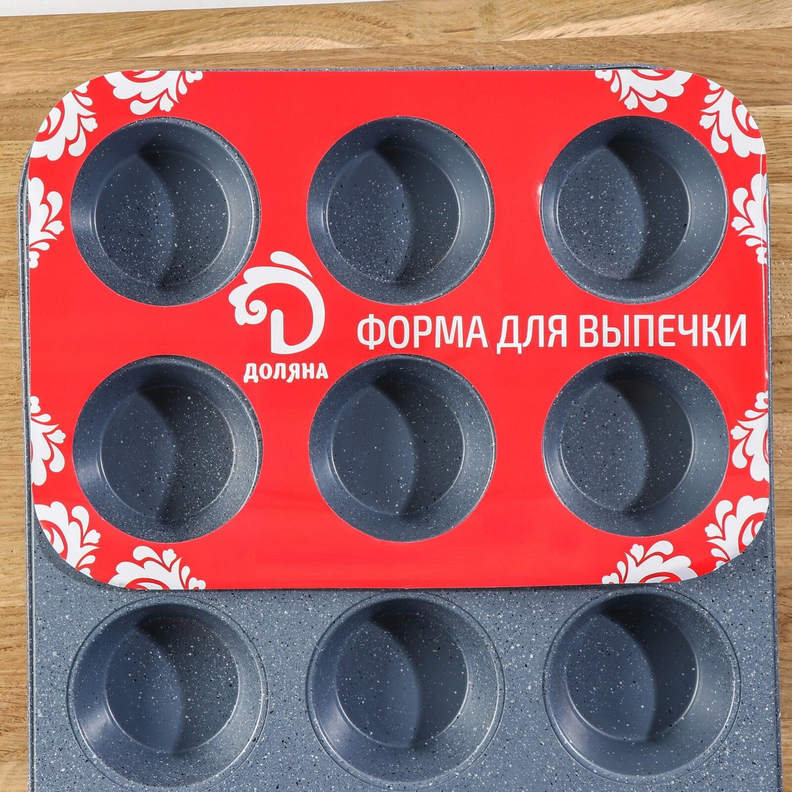 Форма для выпечки Доляна Мрамор, 35 27 см, 12 ячеек, антипригарное покрытие, цвет серый интересное: