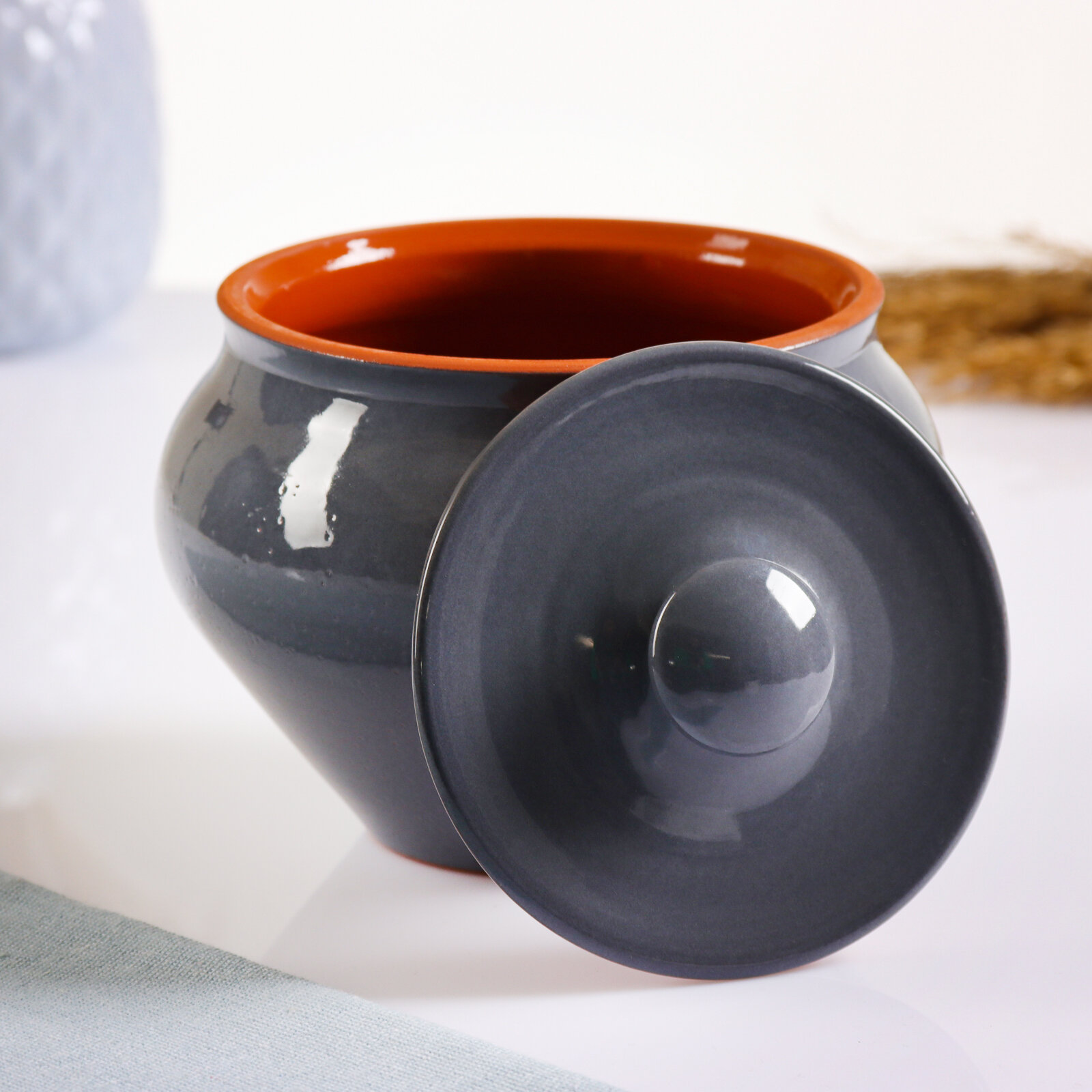 Горшочек под жаркое с крышкой "Вятский" 0.9л, серый