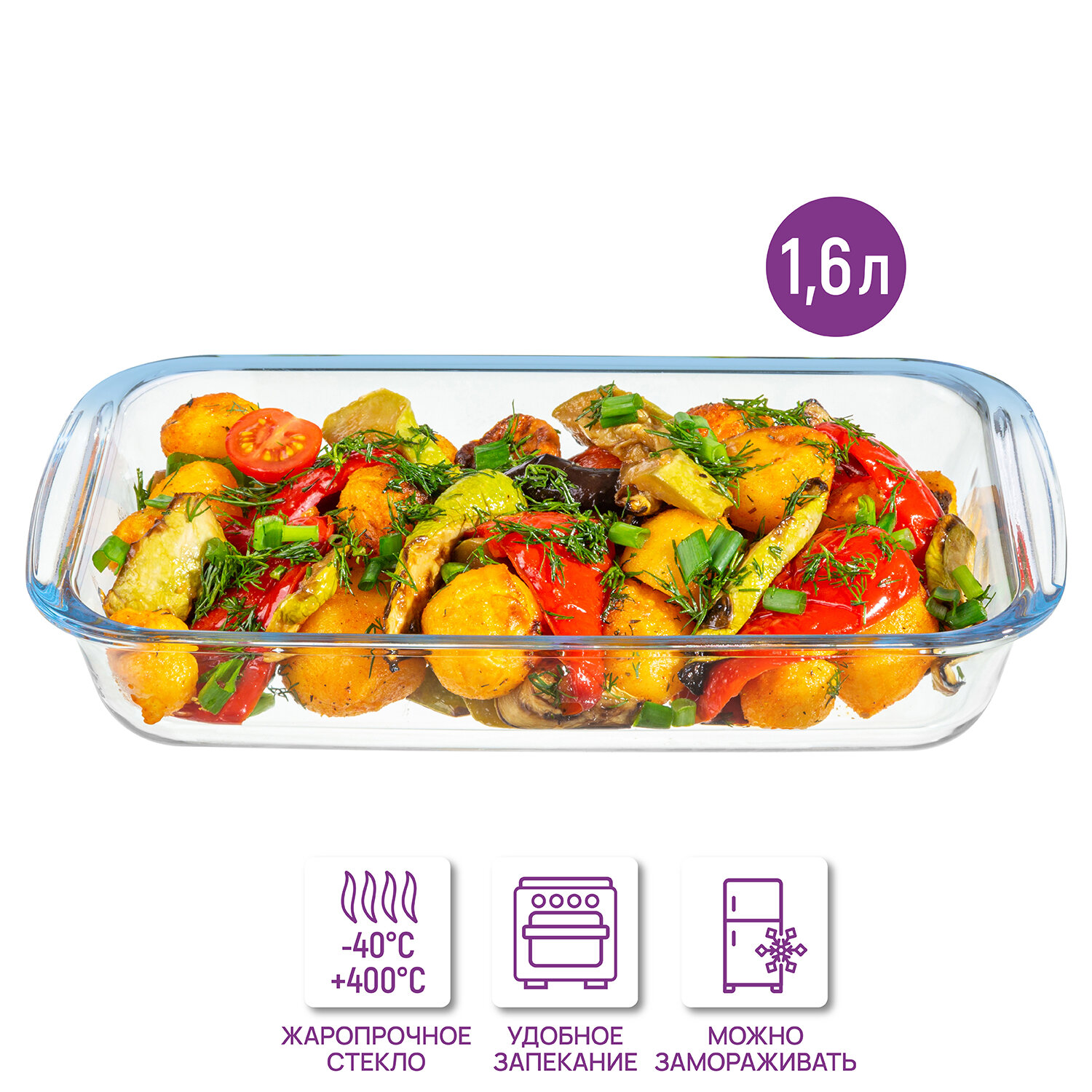 Блюдо для запекания и сервировки 1,6 л 29,5х17,5х5 см Elan Gallery Прямоугольное, жаростойкое стекло интересное: