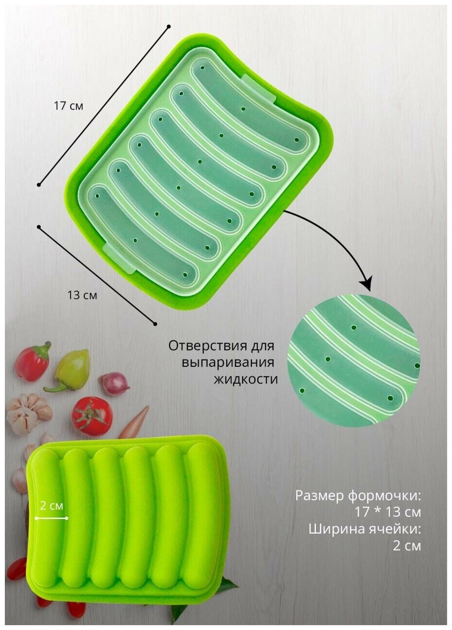 Купить Форма для сосисок для здорового питания для всей семьи/ Форма для сосисок силиконовая/ Форма для запекания сосисок/ зеленый
