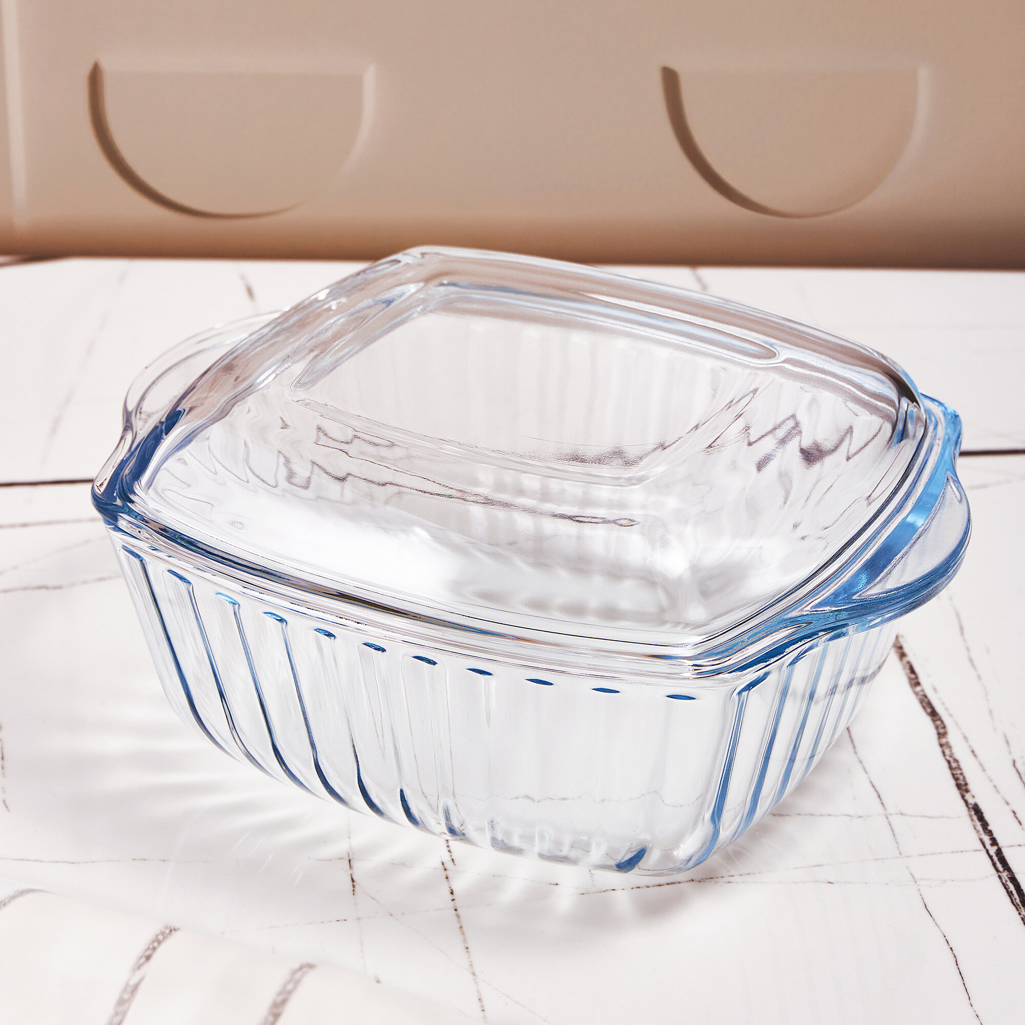 Купить Стеклянная квадратная форма для запекания с крышкой, 1850 мл BORCAM
