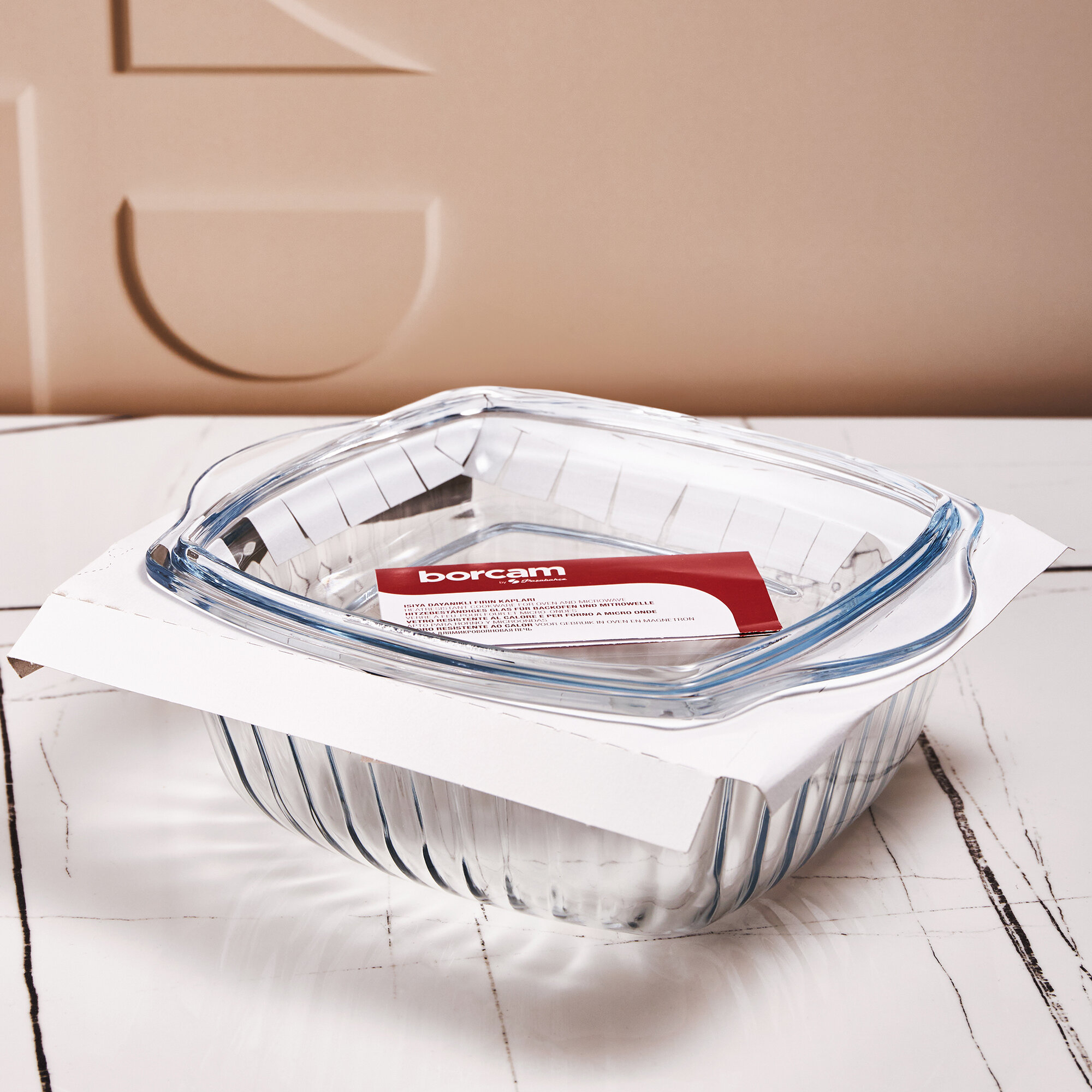 Стеклянная квадратная форма для запекания с крышкой, 3,2 л. BORCAM