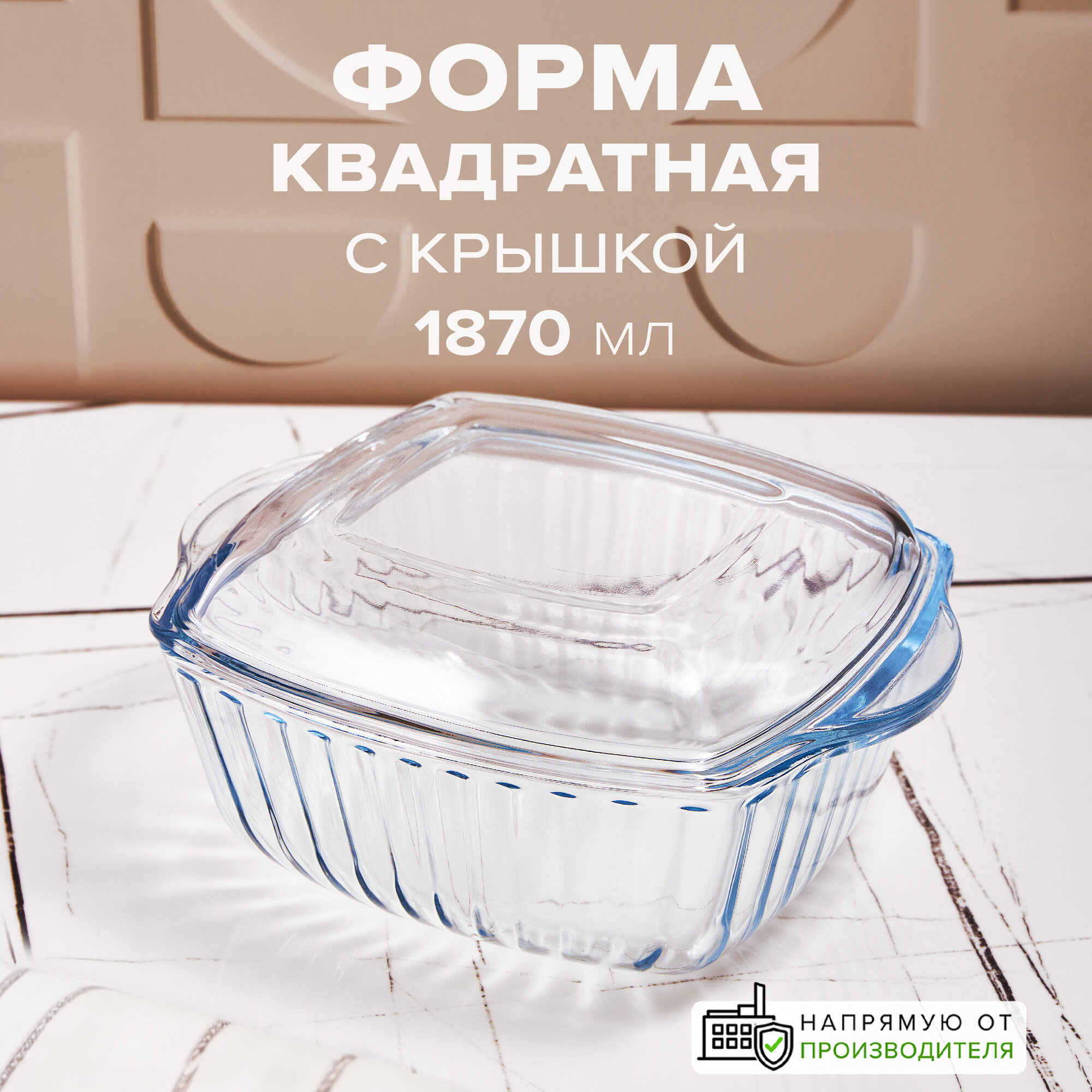 Стеклянная форма для запекания жаропрочная квадратная 1.95 л