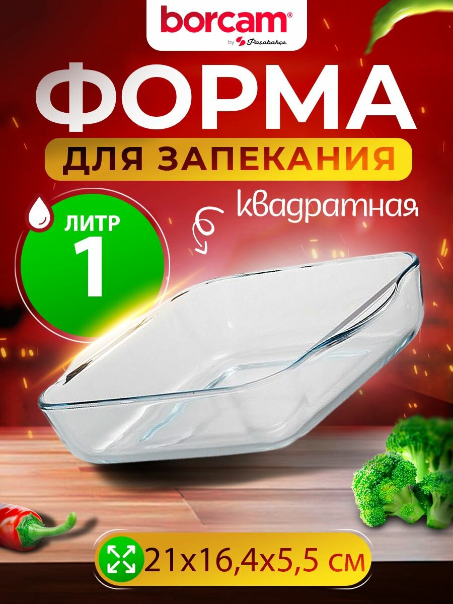 Стеклянная квадратная форма для запекания без крышки, 3,2 л. BORCAM