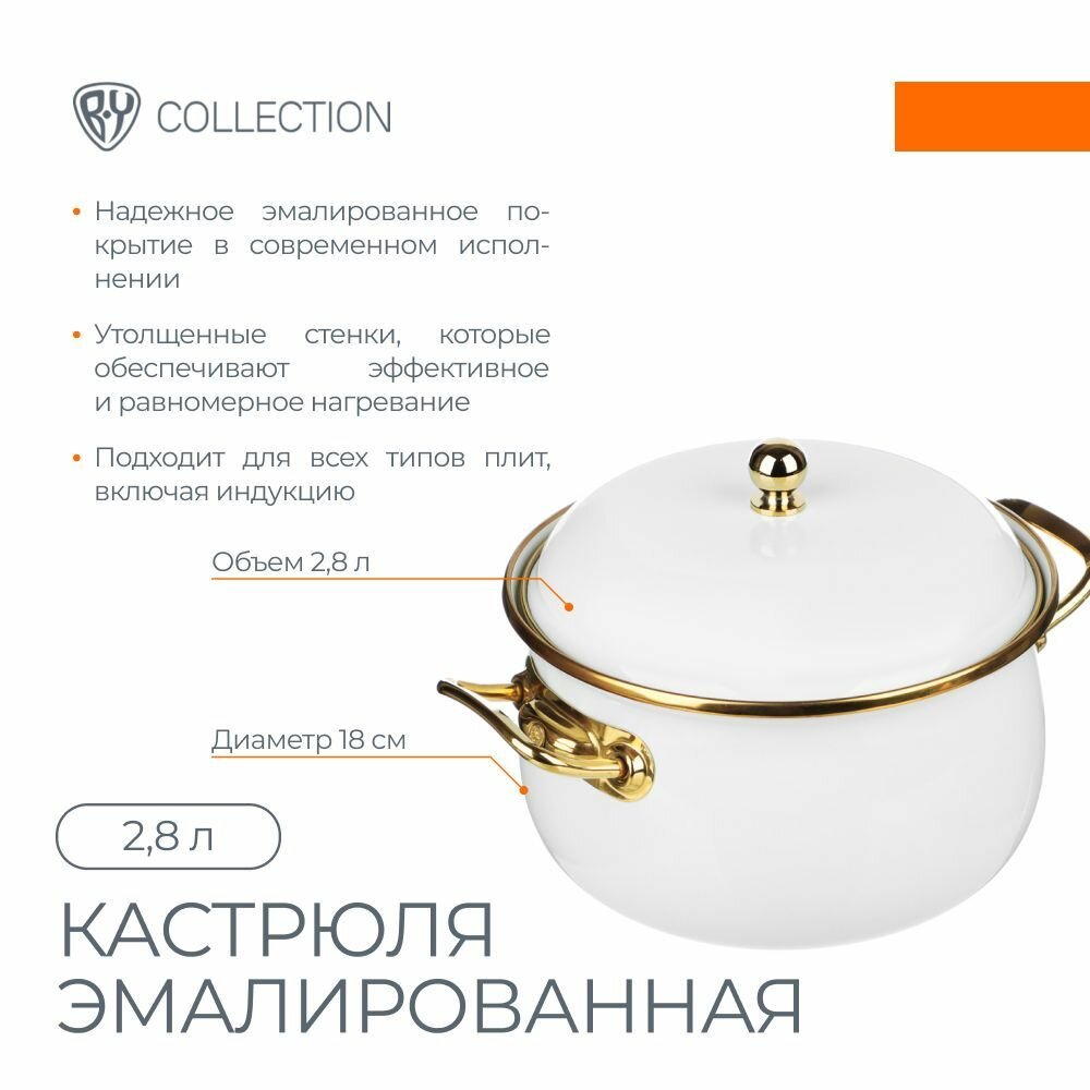 Купить BY COLLECTION Кастрюля эмалированная, 18см, 2,8л, индукция, белый