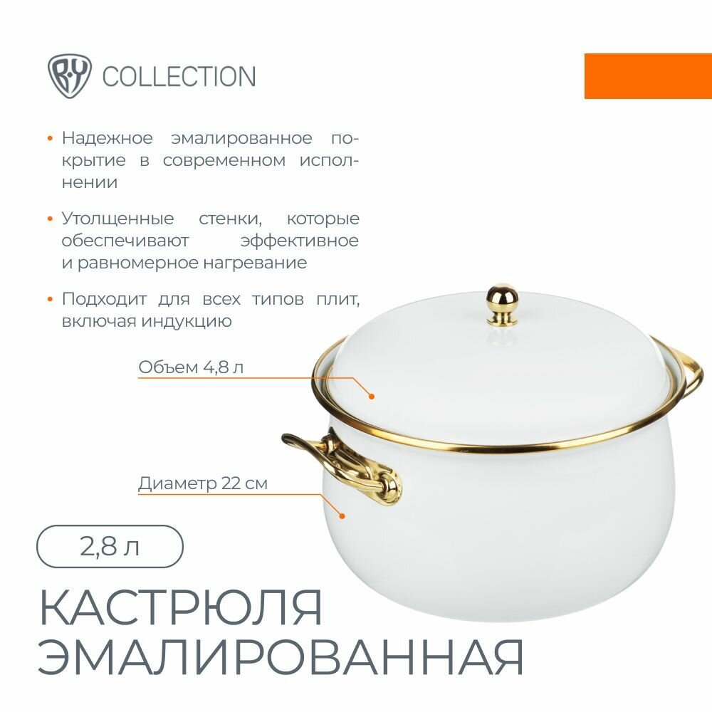 СохранитьBY COLLECTION Кастрюля эмалированная, 22см, 4,8л, индукция, белый интересное:
