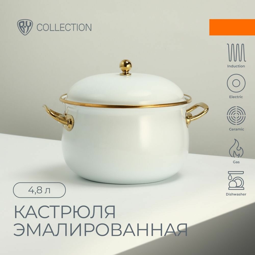 Купить BY COLLECTION Кастрюля эмалированная, 22см, 4,8л, индукция, белый