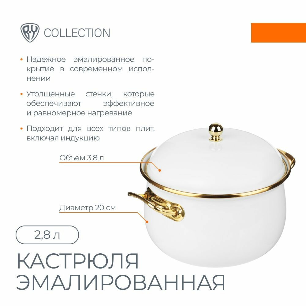 Купить BY COLLECTION Кастрюля эмалированная, 20см, 3,8л, индукция, белый