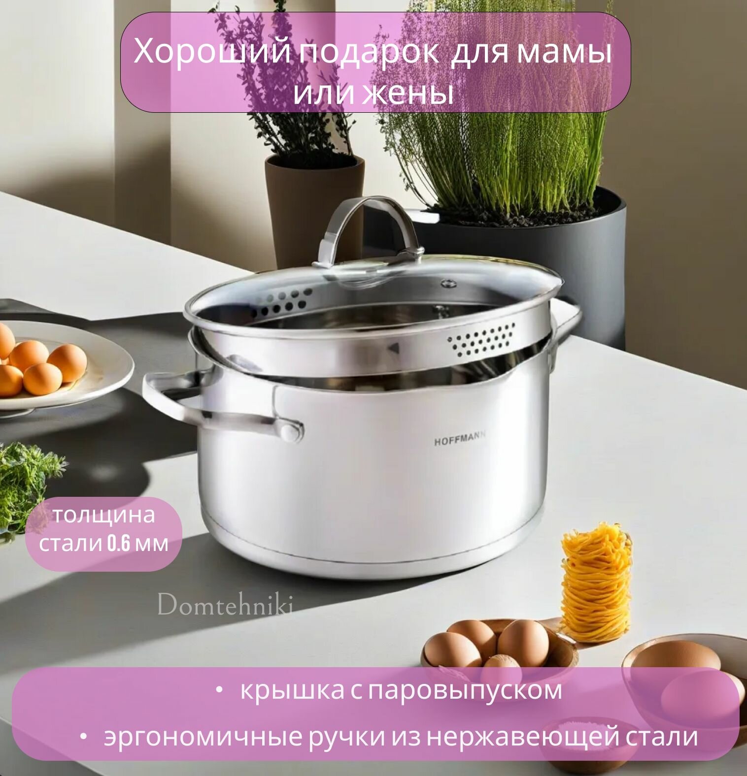 СохранитьКастрюля нерж, 4.7 л, с крыш, крыш стекло, со сливом, Hoffmann, НМ 5622, индукц интересное: