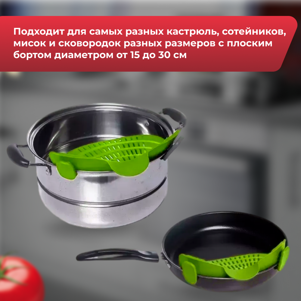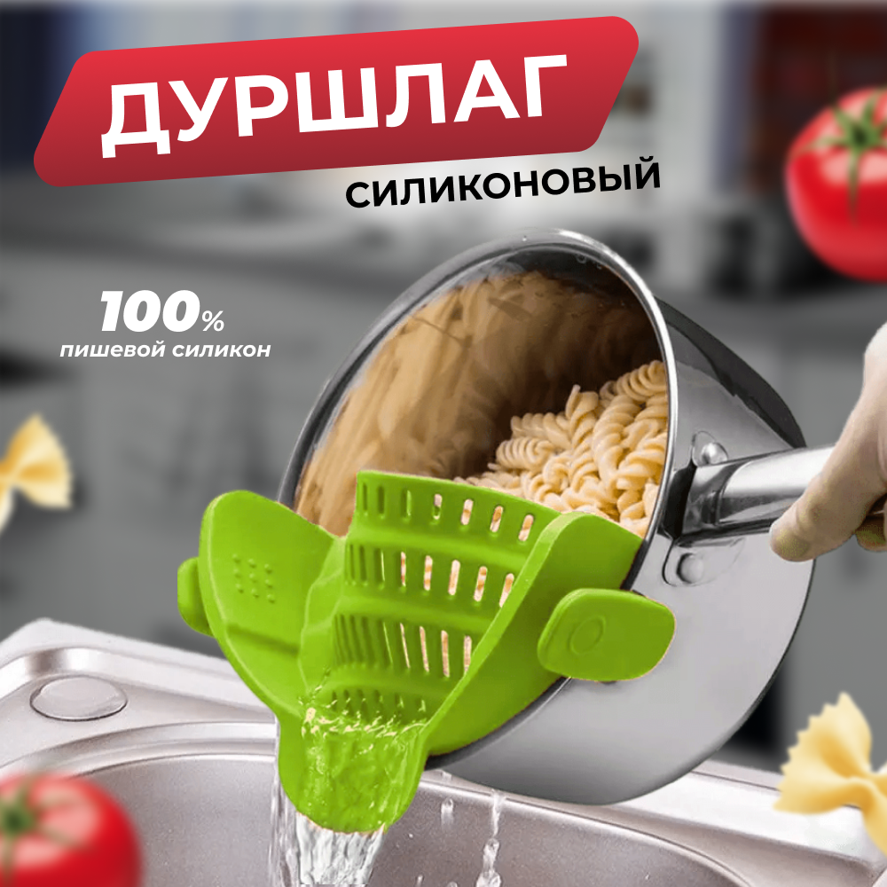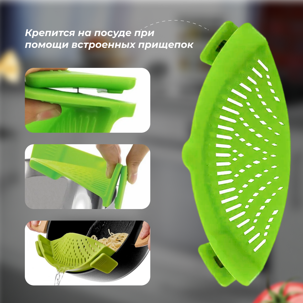 Дуршлаг-слив для кастрюли, силиконовый, на прищепке, компактный дуршлаг, зеленый интересное: