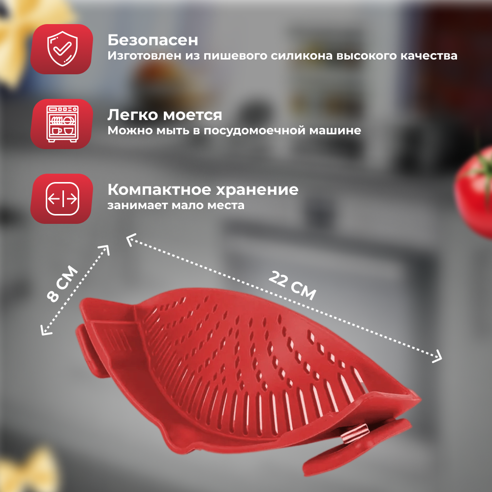 Дуршлаг-слив для кастрюли, силиконовый, на прищепке, компактный дуршлаг, красный интересное: