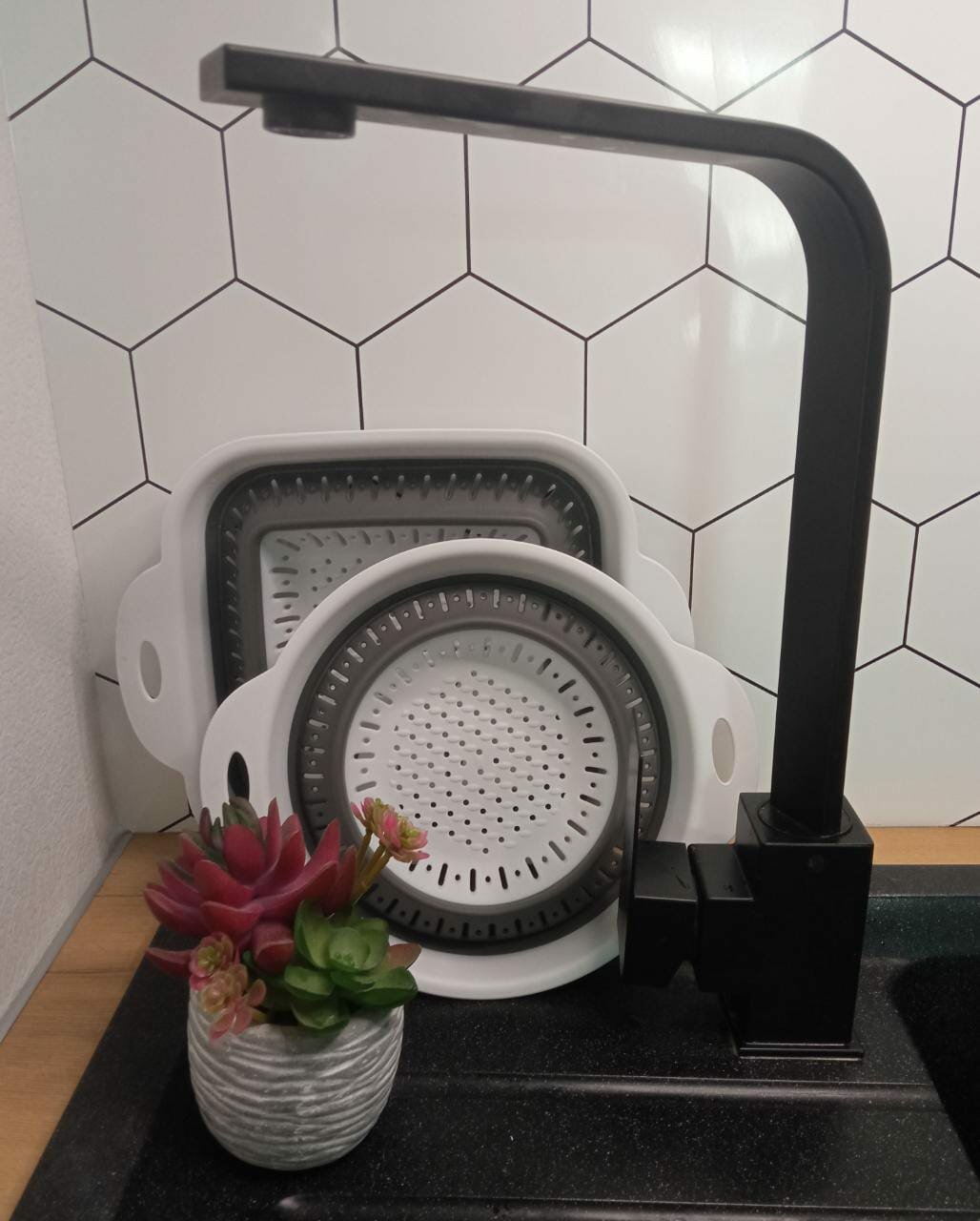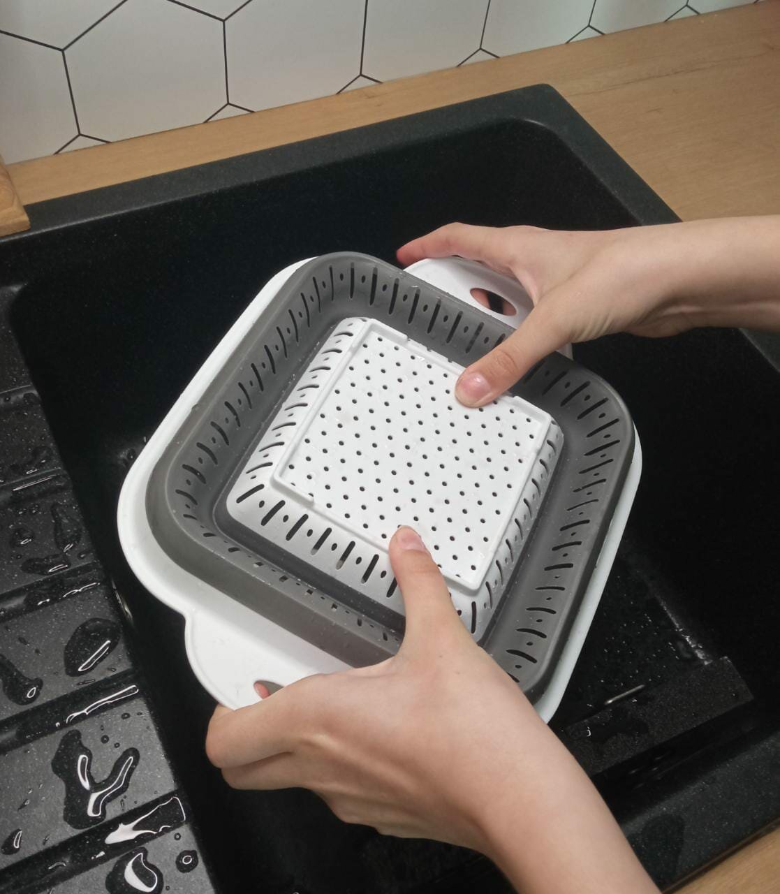 Дуршлаг складной пластиковый и силиконовый квадратный 26см 2,1 литра интересное: