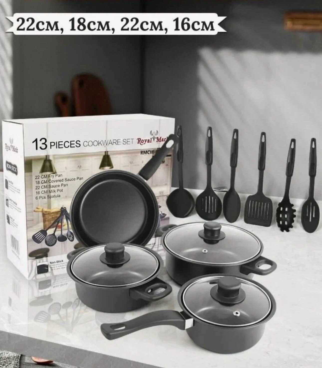 Набор посуды, сковорода и кастрюли с антипригарным покрытием, 13 предметов. интересное: