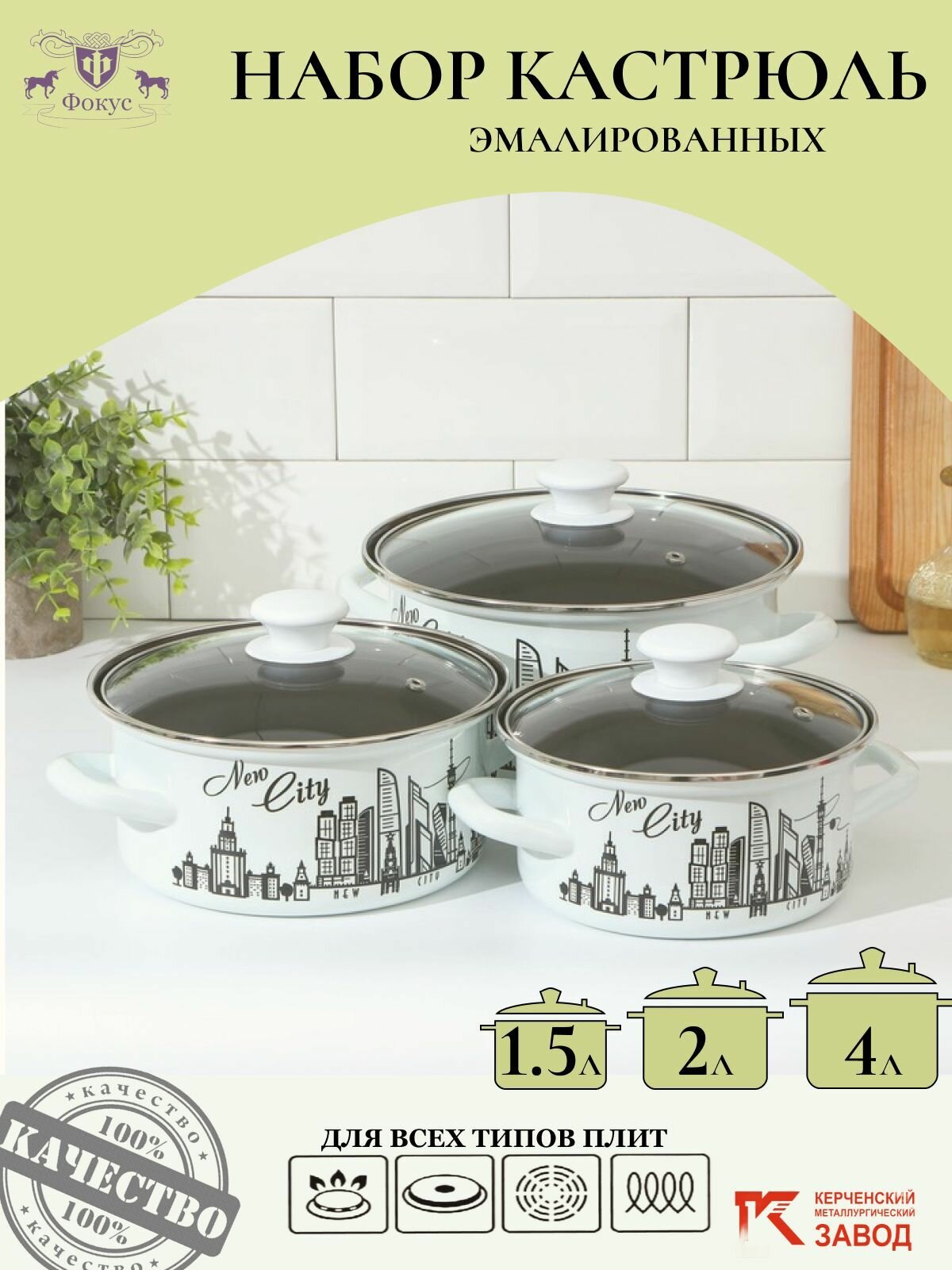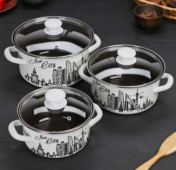 Набор эмалированных кастрюль "Новый город Экстра" 3шт (1.5л, 2.3л, 3л ), Керчь интересное: