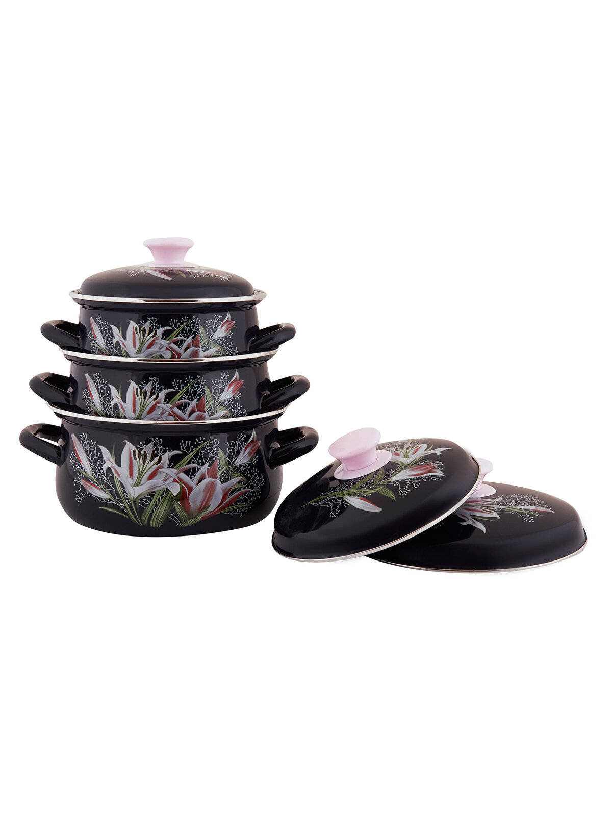 Набор кастрюль Жостово, кастрюли 2/4/5,5л, 1С408 черный