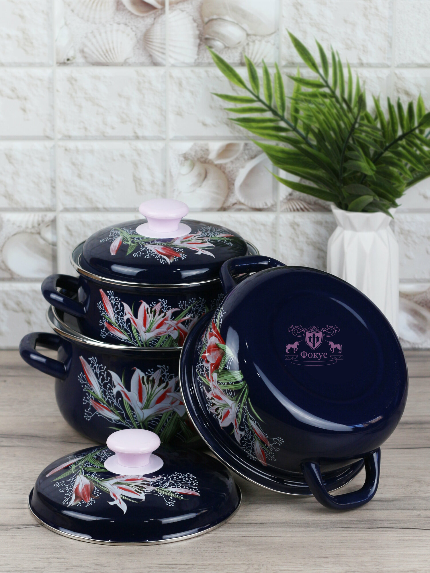 Набор эмалированных кастрюль Версаль, 3 шт
