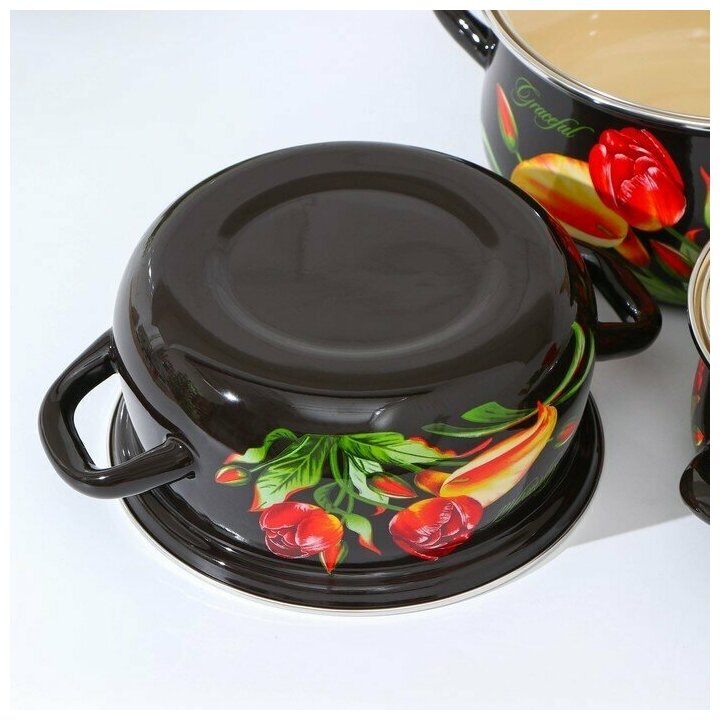 Набор эмалированных кастрюль "Гортензия", 3 предмета: 2 л, 3 л, 4 л, индукция