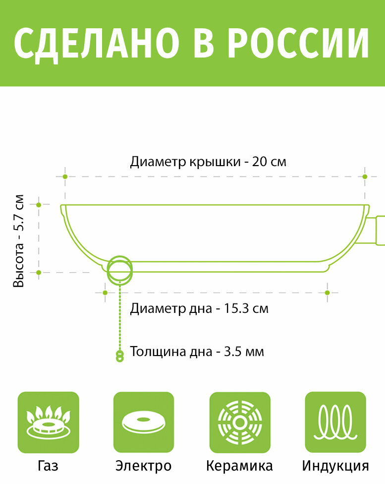 СохранитьСковорода 20см с крышкой ТМ традиция Кристалл индукция съемная ручка каменное покрытие, Россия + Лопатка в подарок интересное:
