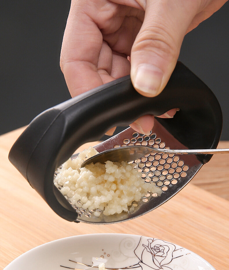Купить Пресс для чеснока и орехов / Чеснокодавилка терка ручная из нержавеющей стали / черная