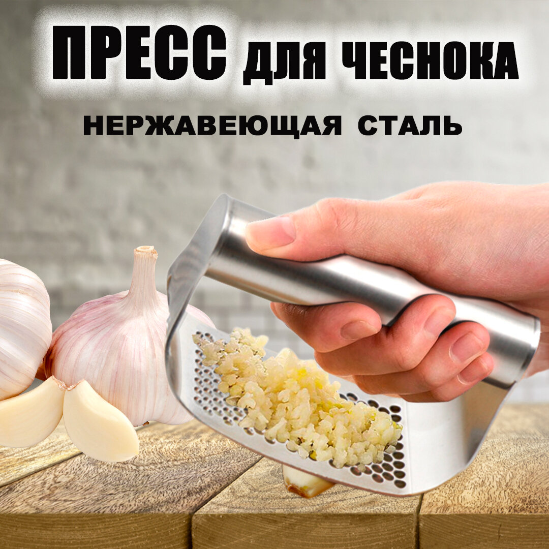 Пресс для чеснока karobas, чеснокодавилка, серебристый интересное: