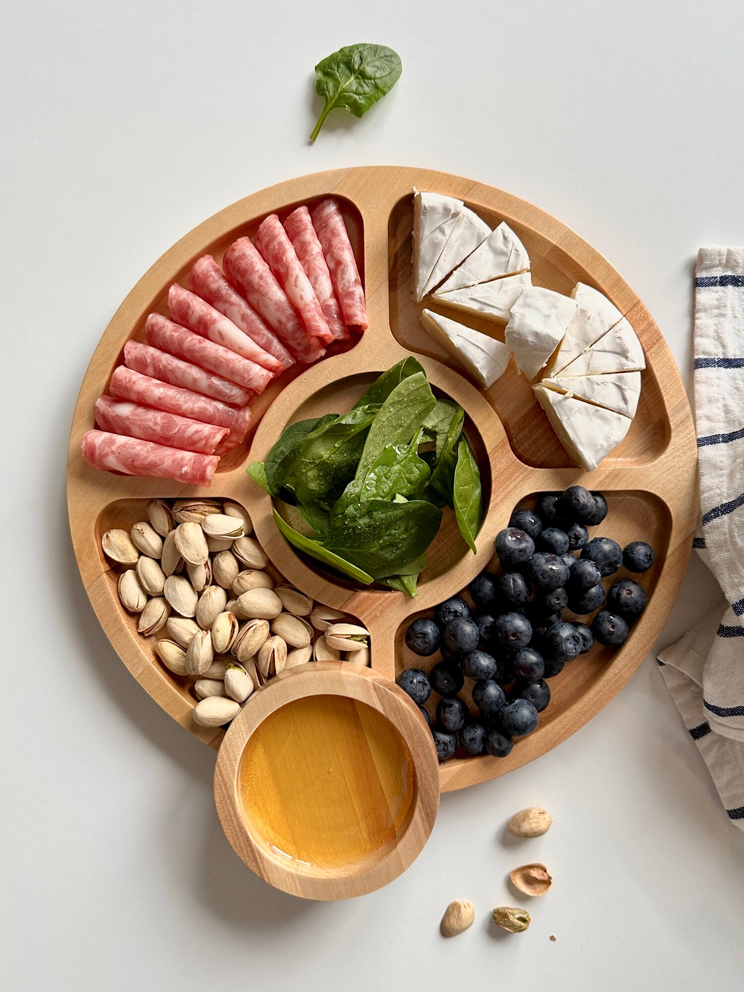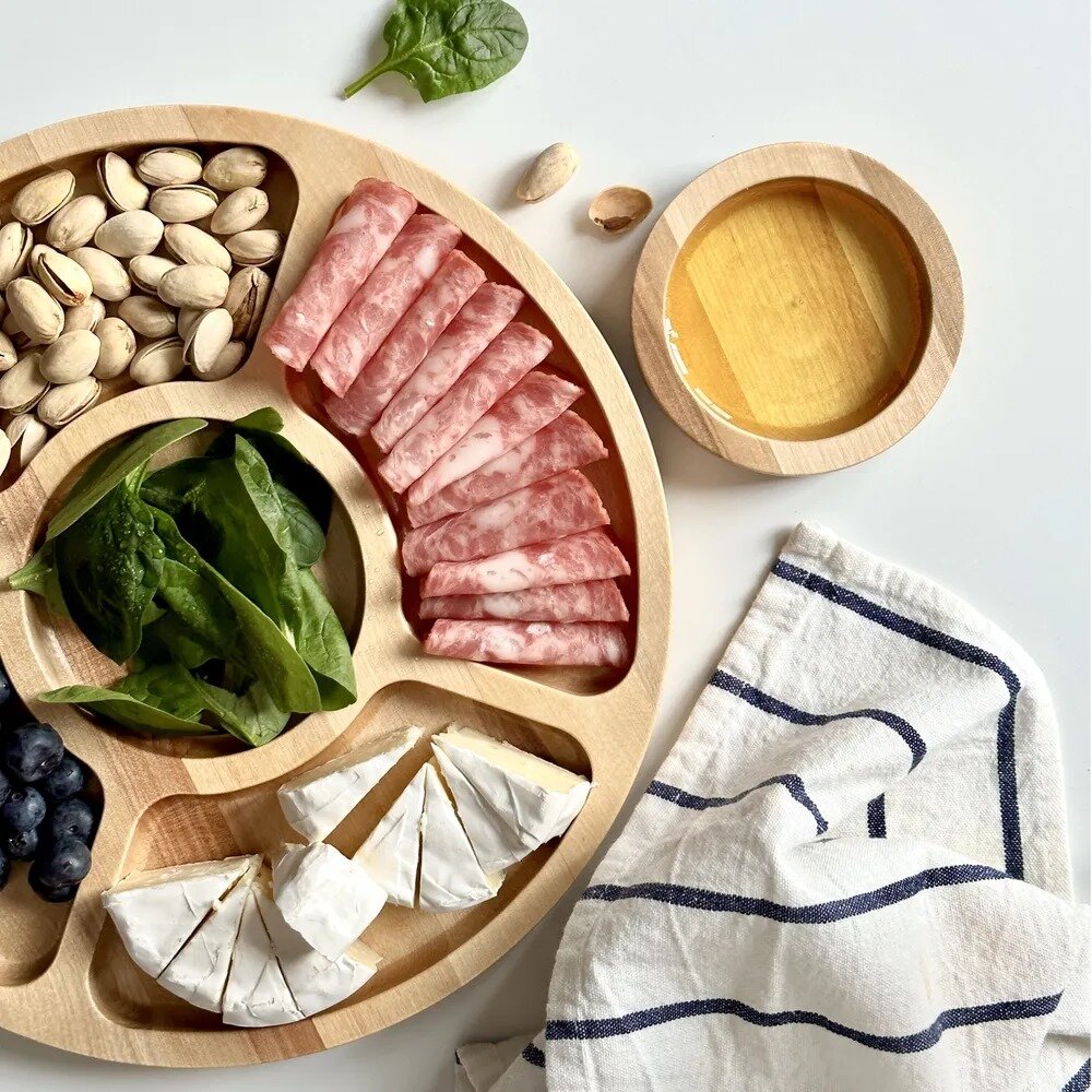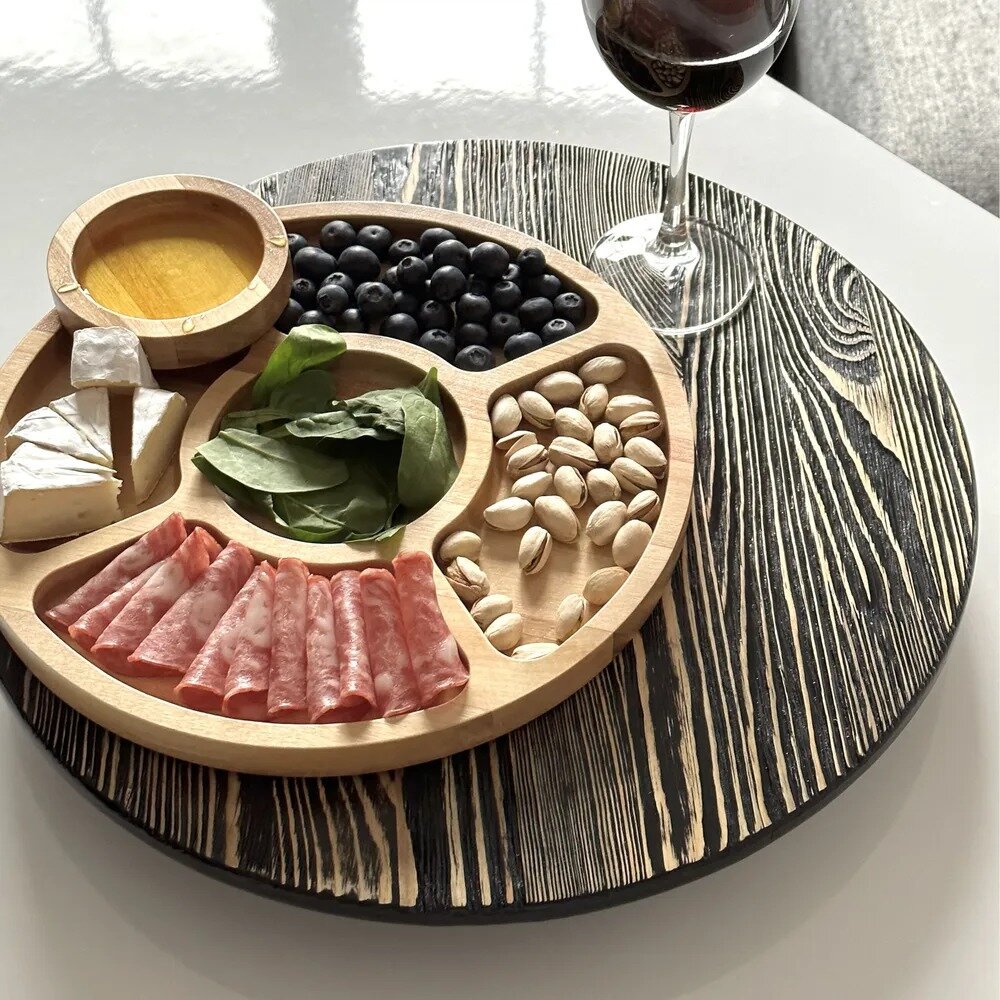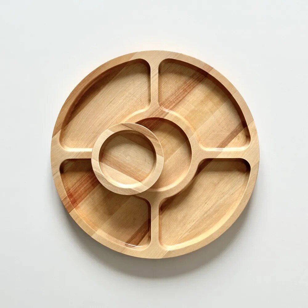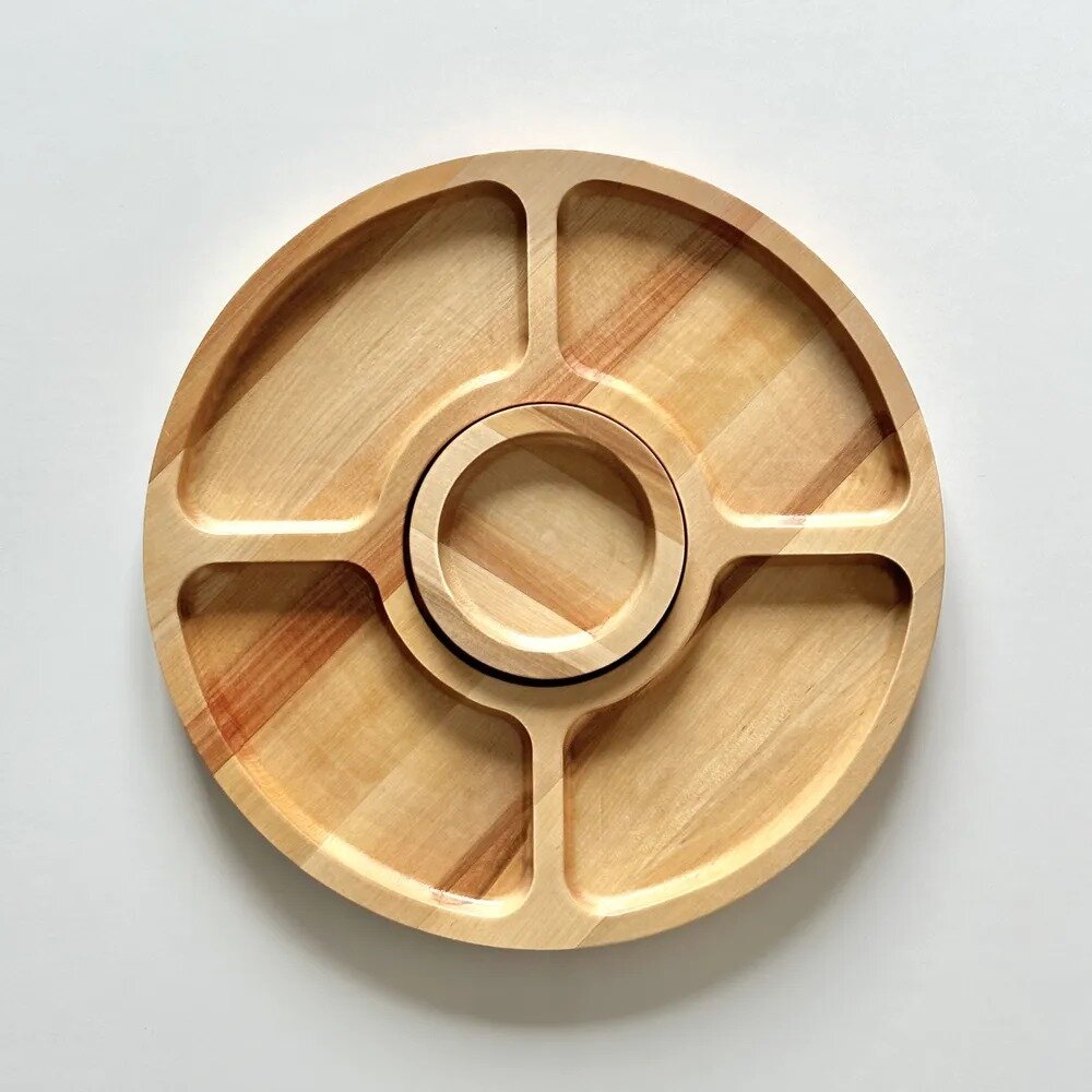 Менажница деревянная круглая 5 секций, для закусок, натуральное дерево